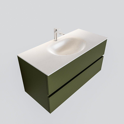 MONDIAZ VICA Badkamermeubelset - 100cm - 2 lades - wasbak Moon midden - 1 kraangat - solid surface army