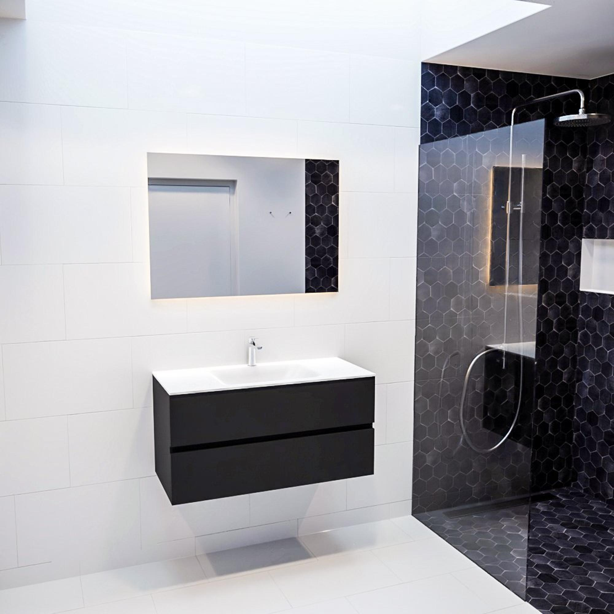 Niet alleen is dit badkamermeubelset een visueel pronkstuk, het is ook uiterst functioneel. De 100cm breedte zorgt ervoor dat het meubel perfect past in zowel kleine als ruime badkamers. De 2 lades zijn voorzien van soepele sluitingen en bieden voldoende opbergruimte voor al jouw toiletartikelen. Daarnaast is het solid surface urban materiaal duurzaam en eenvoudig te reinigen, waardoor het meubel lang mooi blijft.