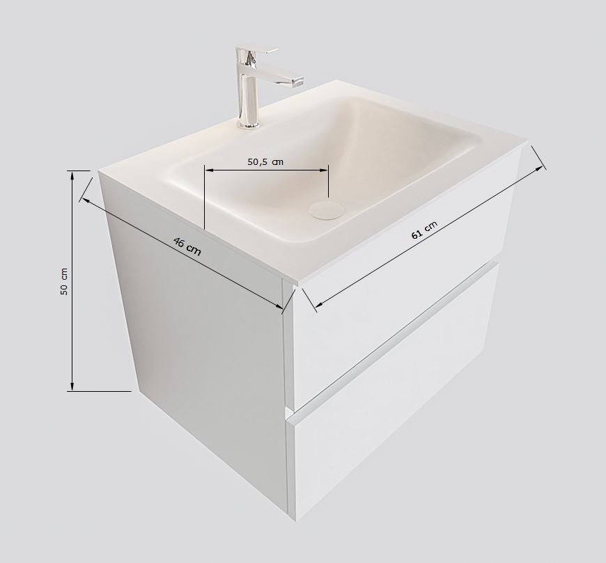 MONDIAZ VICA Badkamermeubelset - 60cm - 2 lades - wasbak Cloud midden - 1 kraangat - solid surface urban