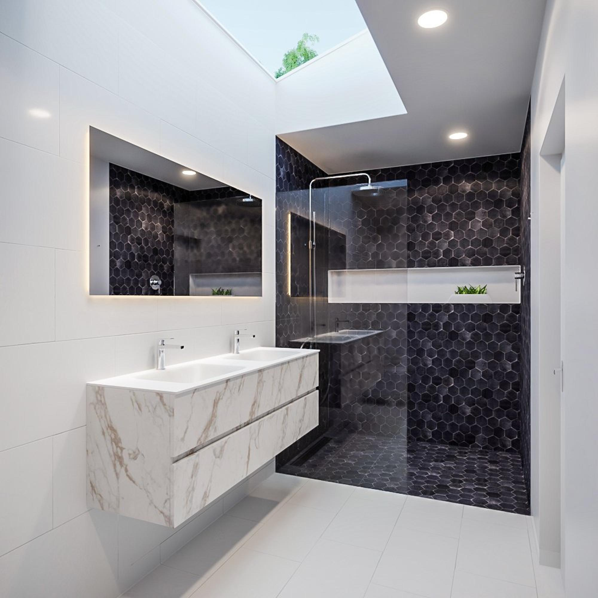 De MONDIAZ VICA Badkamermeubelset onderscheidt zich door zijn stijlvolle uitstraling. Het carrara marmer geeft een luxe en exclusieve touch aan de badkamer. De strakke lijnen en het minimalistische design zorgen voor een eigentijdse look die de ruimte verfraait en een gevoel van verfijning toevoegt.