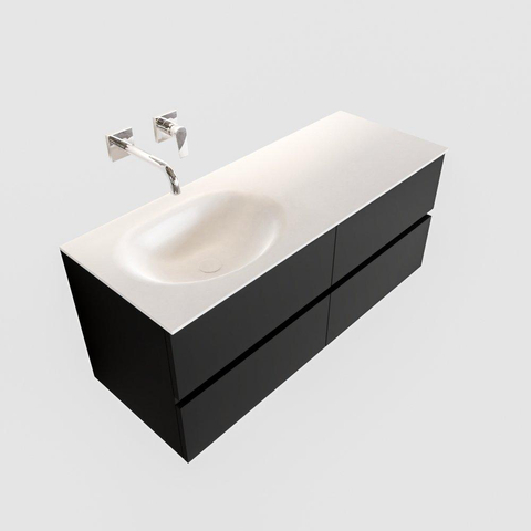 MONDIAZ VICA Badkamermeubelset - 120cm - 4 lades - wasbak Moon links - 0 kraangaten - solid surface urban