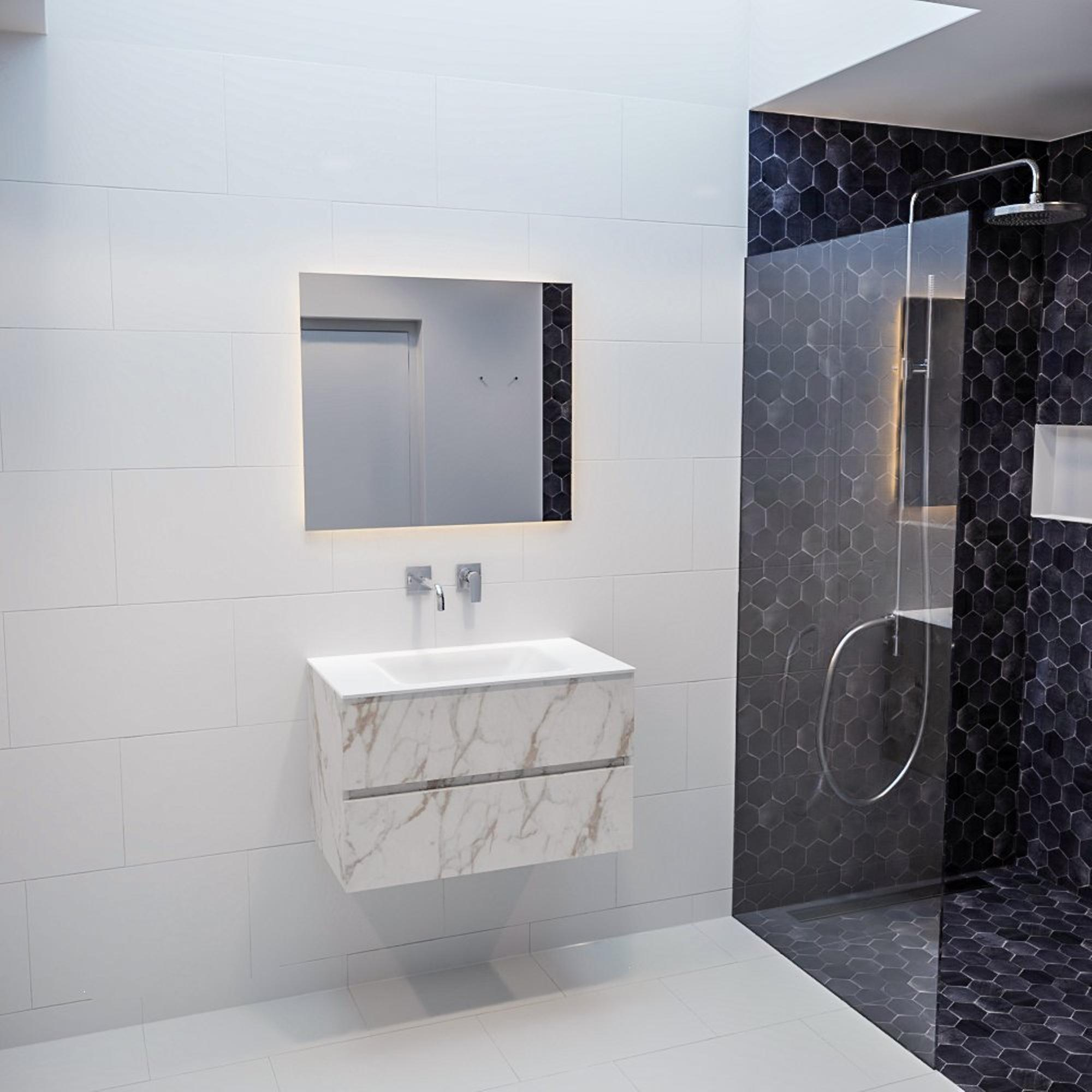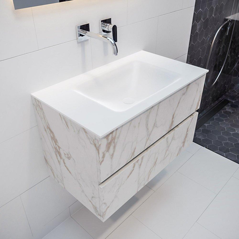 MONDIAZ VICA Badkamermeubelset - 80cm - 2 lades - wasbak Cloud midden - 0 kraangaten - solid surface carrara marmer