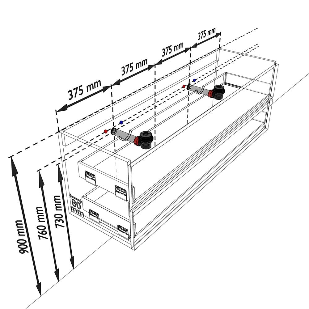 De MONDIAZ VICA Badkamermeubelset straalt luxe uit in elke vezel. Het solid surface carrara marmer geeft een tijdloze en chique uitstraling aan de wasbak en het meubel. De dubbele wasbak met twee kraangaten biedt niet alleen gemak, maar voegt ook een vleugje elegantie toe aan de badkamer. De gladde afwerking en strakke lijnen van het meubel zorgen voor een moderne en luxe uitstraling die de badkamer naar een hoger niveau tilt.