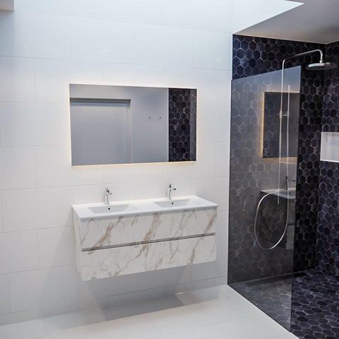 MONDIAZ VICA Badkamermeubelset - 120cm - 2 lades - wastafel denia dubbel 2 kraangaten - keramiek - carrara marmer