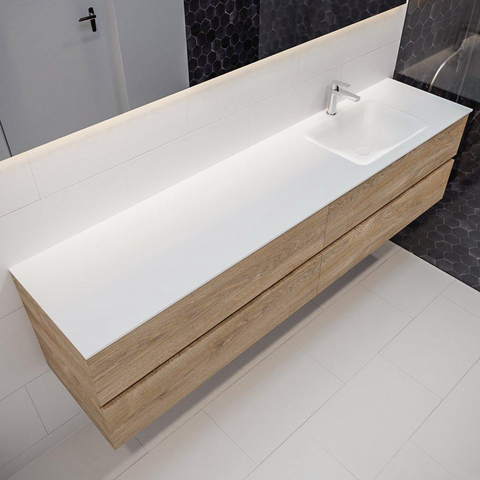 MONDIAZ VICA Badkamermeubelset - 200cm - 4 lades - wasbak Cloud rechts - 1 kraangat - solid surface washed oak