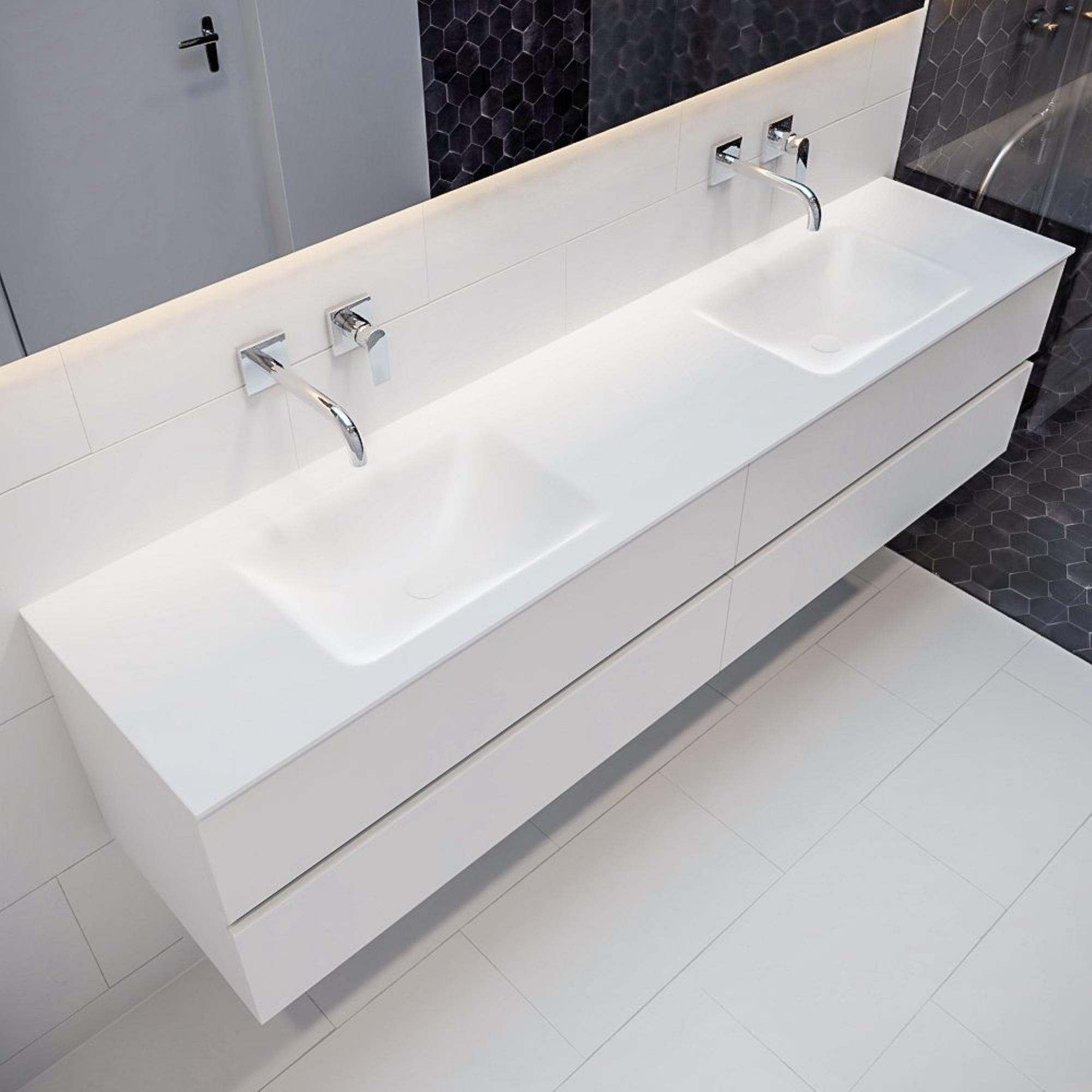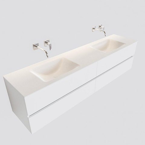 MONDIAZ VICA Badkamermeubelset - 200cm - 4 lades - wasbak Cloud dubbel - 0 kraangaten - solid surface talc