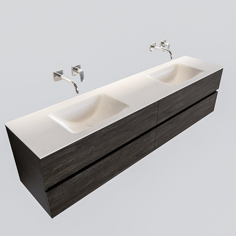 MONDIAZ VICA Badkamermeubelset - 200cm - 4 lades - wasbak Cloud dubbel - 0 kraangaten - solid surface dark brown