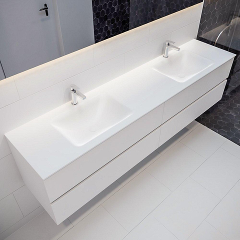 MONDIAZ VICA Badkamermeubelset - 200cm - 4 lades - wasbak Cloud dubbel - 2 kraangaten - solid surface talc