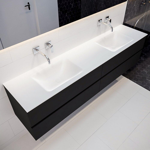 MONDIAZ VICA Badkamermeubelset - 200cm - 4 lades - wasbak Cloud dubbel - 0 kraangaten - solid surface urban