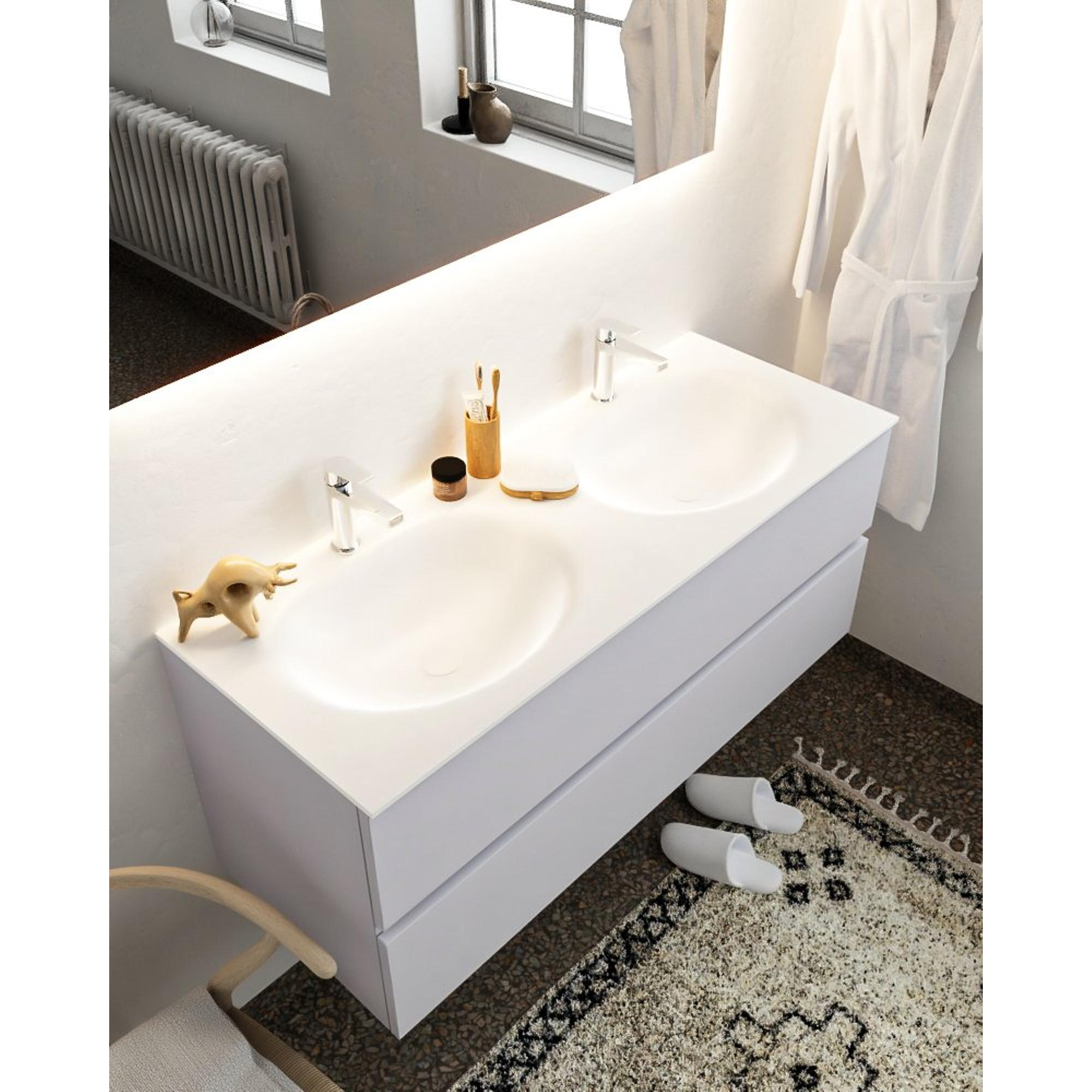 MONDIAZ VICA Badkamermeubelset - 120cm - 2 lades - wasbak Moon dubbel - 2 kraangaten - solid surface cale