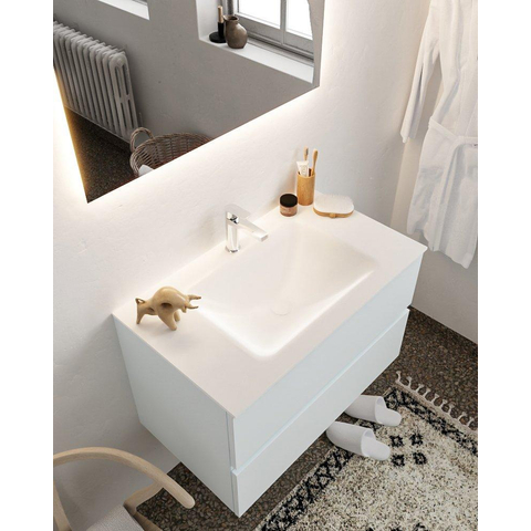 MONDIAZ VICA Badkamermeubelset - 80cm - 2 lades - wasbak Cloud midden - 1 kraangat - solid surface clay