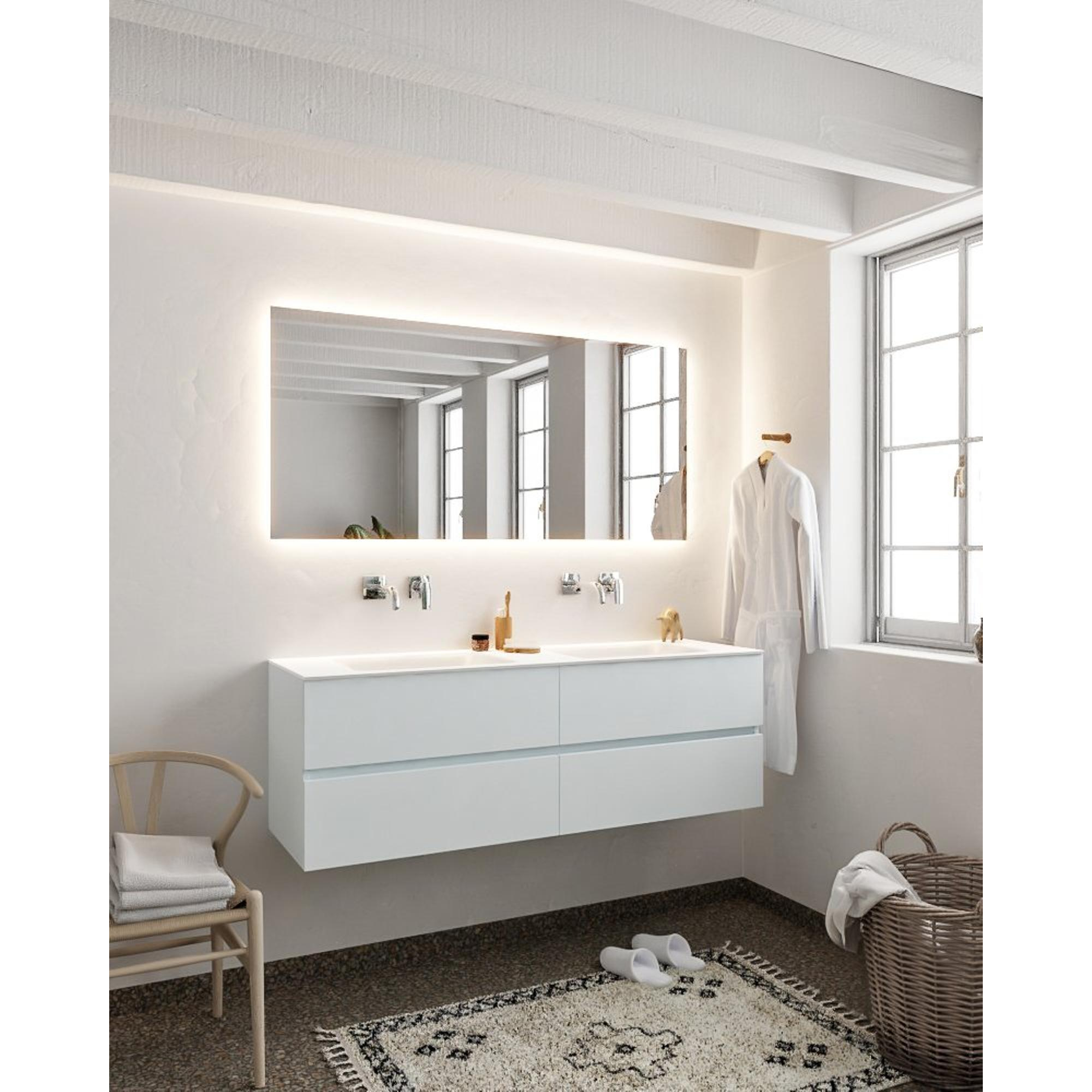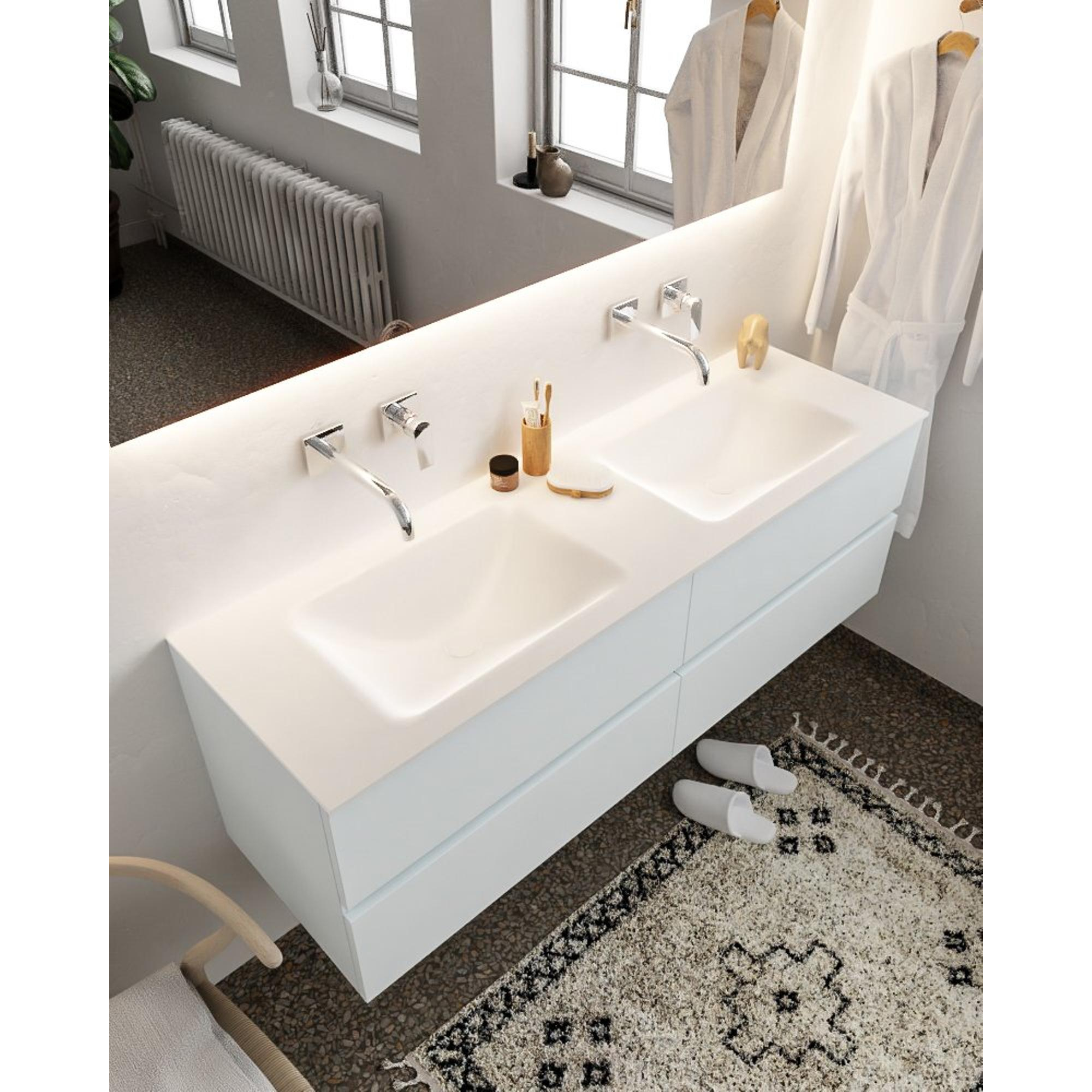 MONDIAZ VICA Badkamermeubelset - 150cm - 4 lades - wasbak Cloud dubbel - 0 kraangaten - solid surface clay