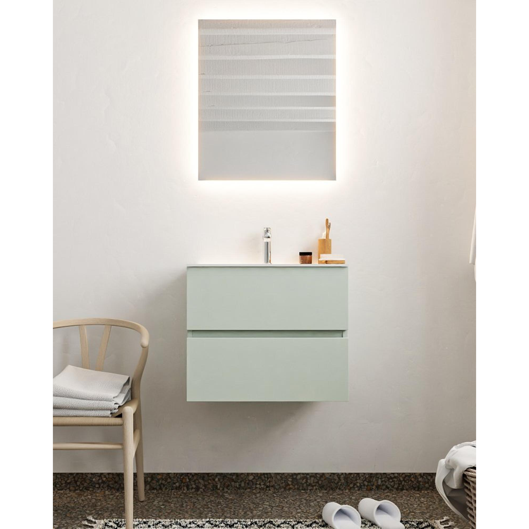 Deze badkamermeubelset van 60 cm met 2 lades is een ware aanwinst voor elke badkamer. Het elegante ontwerp, gecombineerd met de wasbak Cloud midden en het kraangat, straalt stijl en klasse uit. Vervaardigd uit hoogwaardig solid surface materiaal in een greey tint, voegt dit meubel niet alleen functionaliteit toe, maar ook een vleugje luxe aan de ruimte. Of je nu op zoek bent naar een upgrade voor je badkamer of een nieuwe installatie, de MONDIAZ VICA Badkamermeubelset voldoet aan al je behoeften.