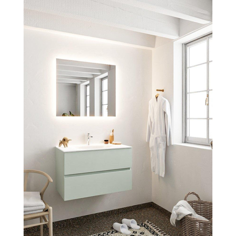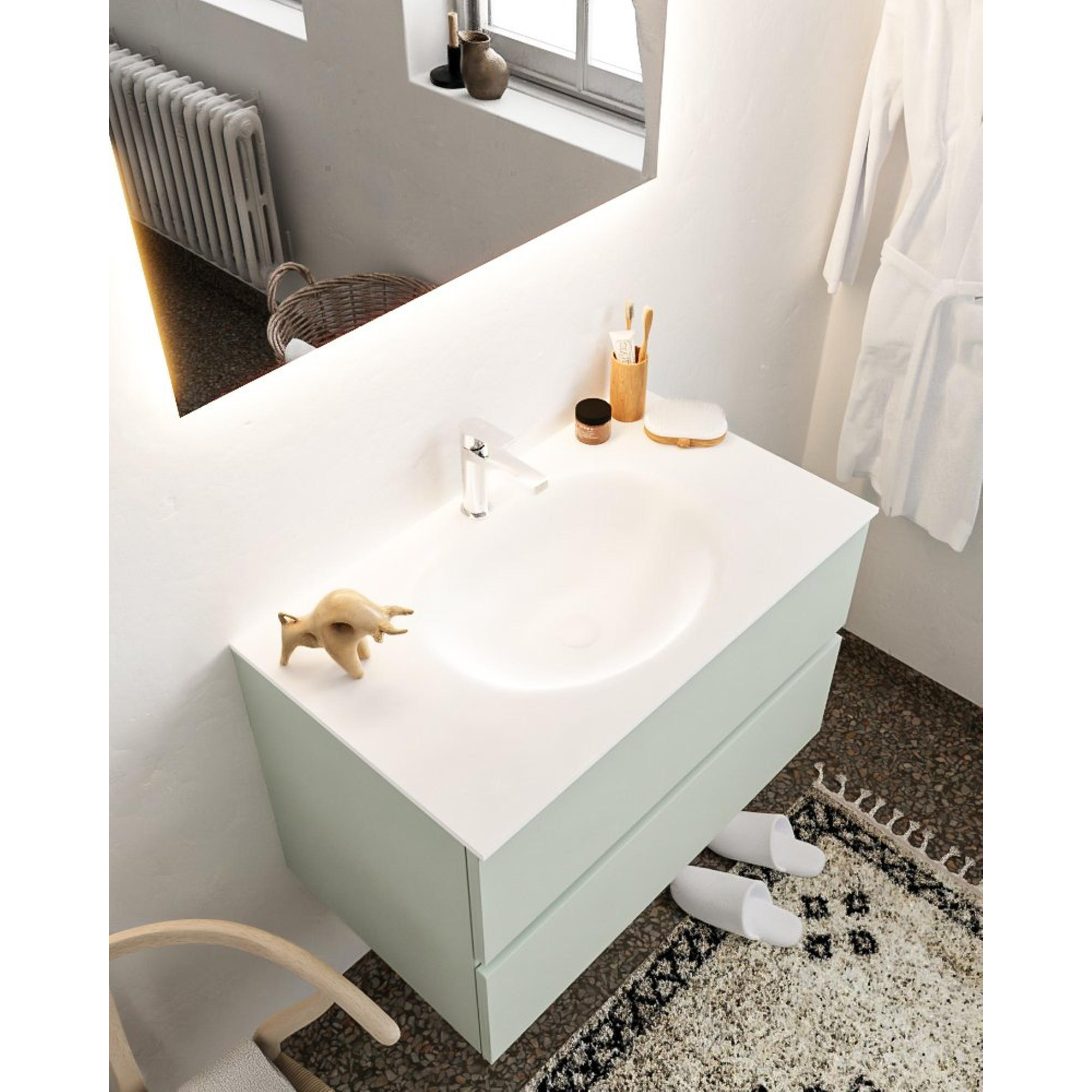 MONDIAZ VICA Badkamermeubelset - 80cm - 2 lades - wasbak Moon midden - 1 kraangat - solid surface greey