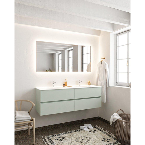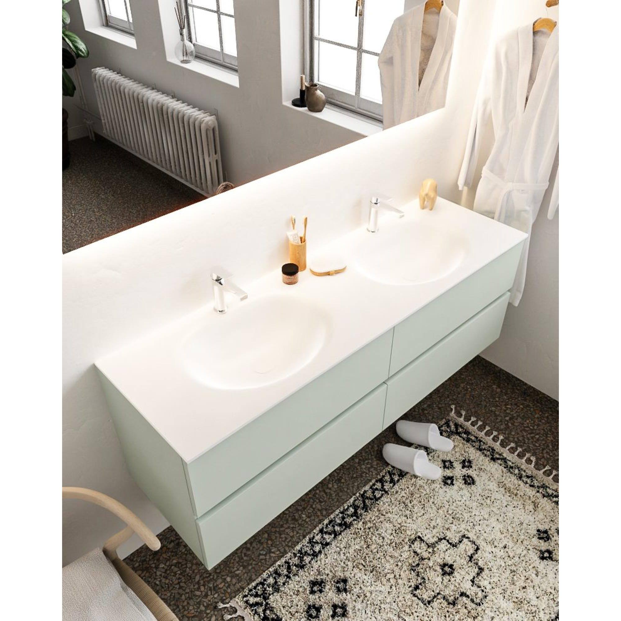 MONDIAZ VICA Badkamermeubelset - 150cm - 4 lades - wasbak Moon dubbel - 2 kraangaten - solid surface greey
