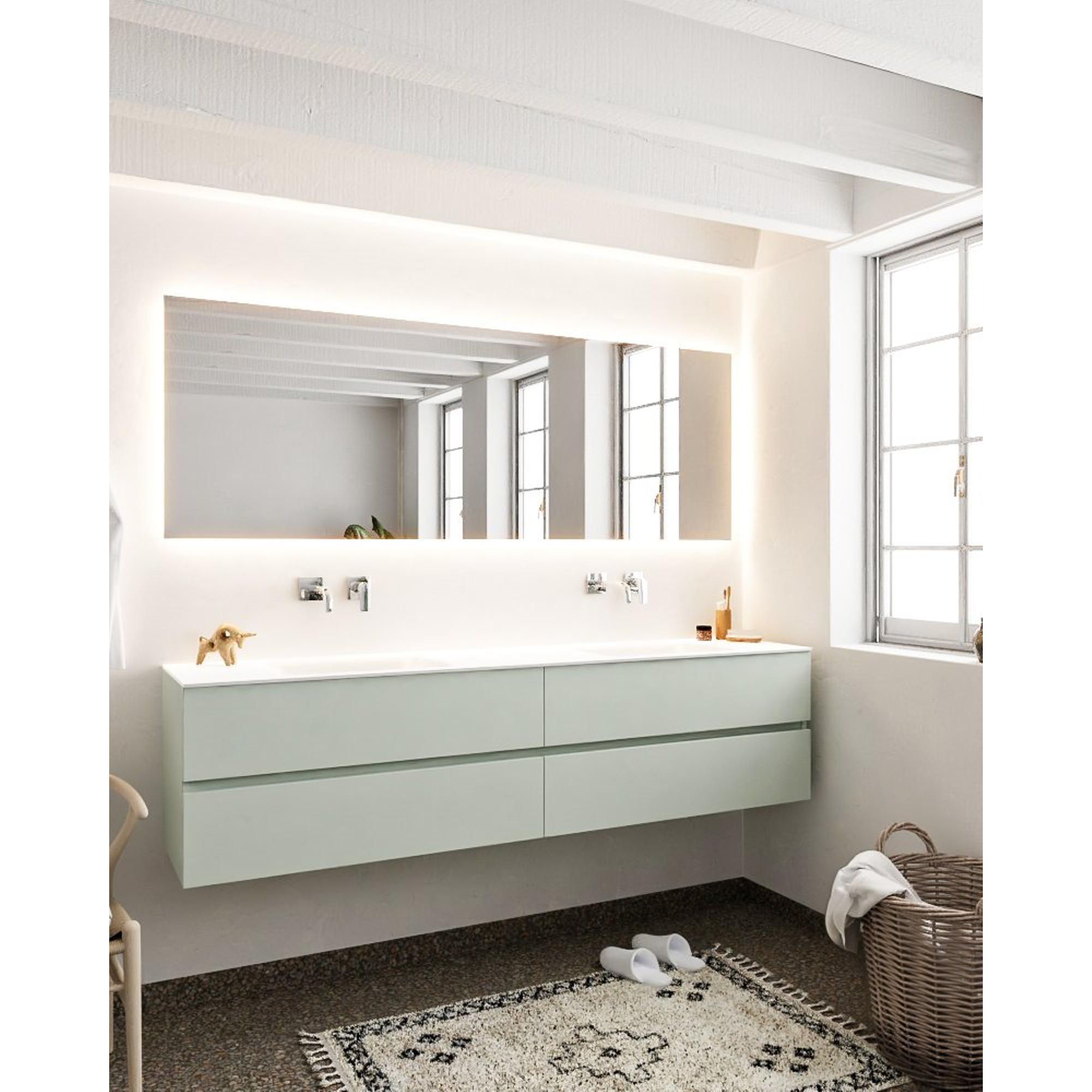 Dit prachtige MONDIAZ VICA badkamermeubelset is een ware eyecatcher voor elke badkamer. Met zijn elegante design en hoogwaardige afwerking voegt dit meubel niet alleen stijl toe aan de ruimte, maar biedt het ook praktische opbergruimte en functionaliteit. Met een breedte van 200cm en vier ruime lades, samen met een dubbele wasbak in de kleur Cloud en een solide surface greey afwerking, is dit meubel perfect voor een moderne en luxe badkamer.