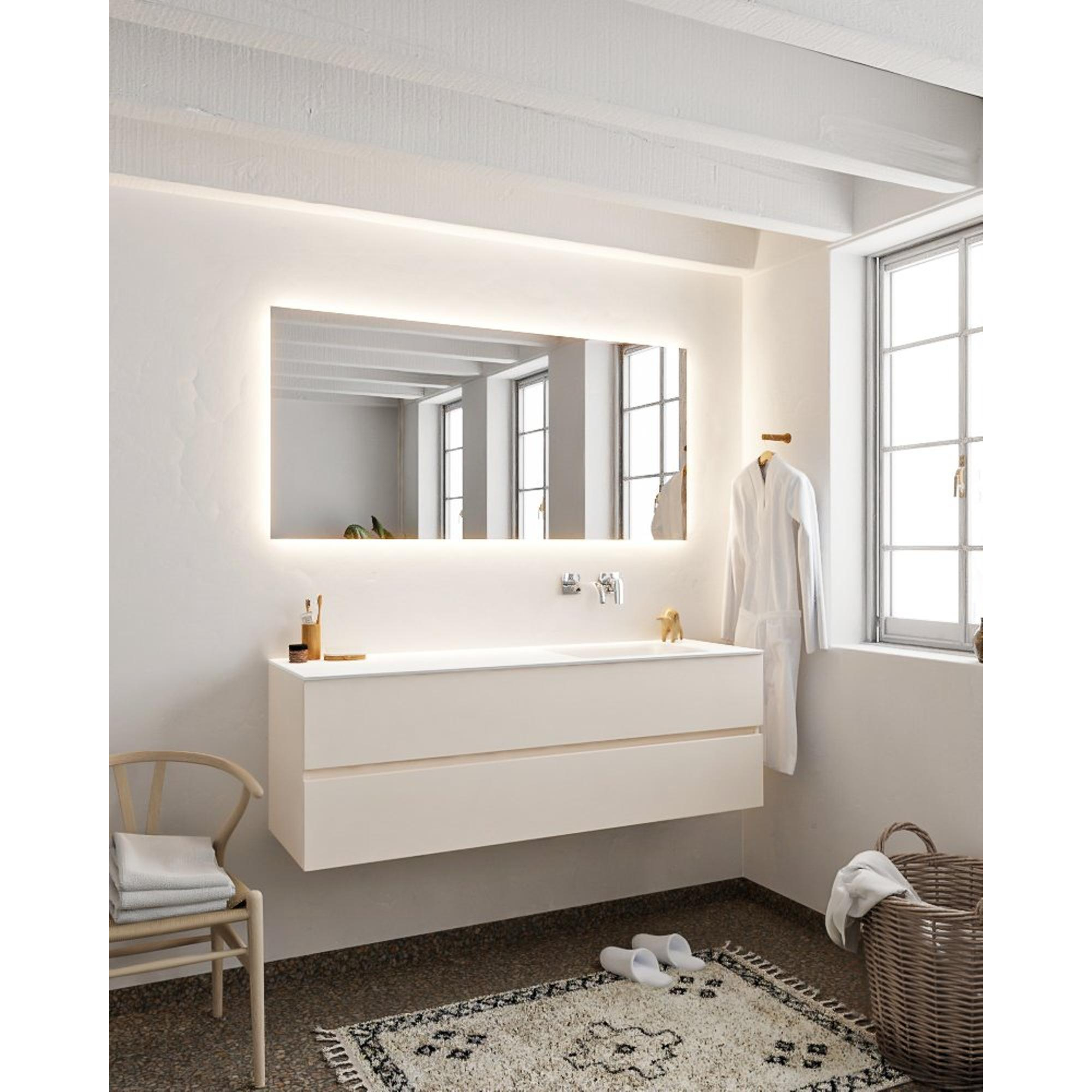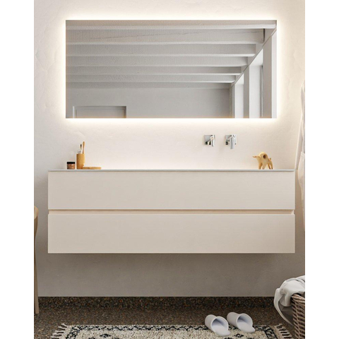 MONDIAZ VICA Badkamermeubelset - 150cm - 2 lades - wasbak Cloud rechts - 0 kraangaten - solid surface linen