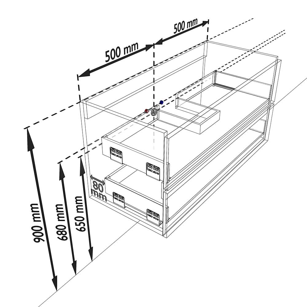 Naast zijn esthetische waarde is dit badkamermeubelset ook zeer functioneel. Met twee ruime lades biedt het voldoende opbergruimte voor al uw badkamerbenodigdheden, van handdoeken tot toiletartikelen. De wasbak Denia in het midden zorgt voor een handige indeling, terwijl het kraangat perfect is gepositioneerd voor eenvoudig gebruik. Alles is ontworpen met het oog op gebruiksgemak en comfort, waardoor uw badkamer een georganiseerde en praktische ruimte wordt.