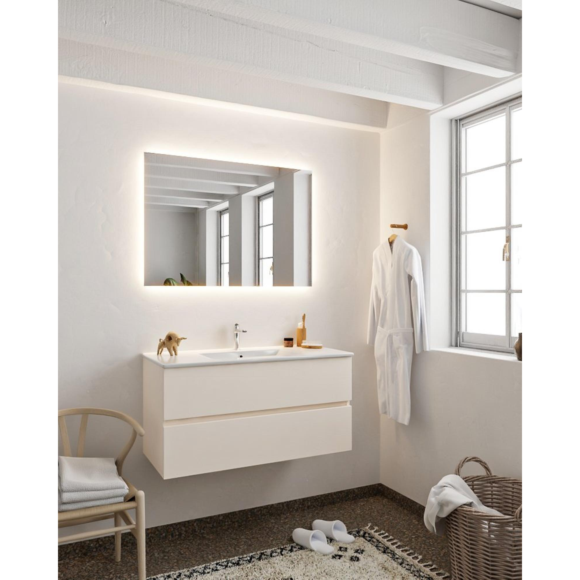 MONDIAZ VICA Badkamermeubelset - 100cm - 2 lades - wasbak Denia midden - 1 kraangat - solid surface linen