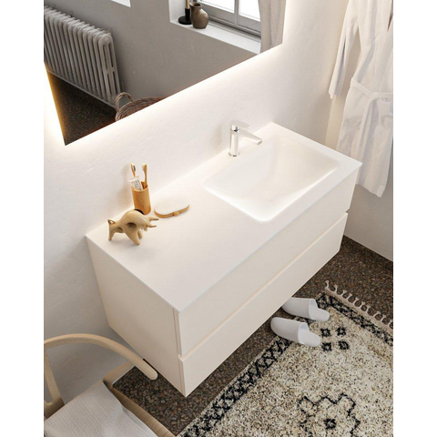 MONDIAZ VICA Badkamermeubelset - 100cm - 2 lades - wasbak Cloud rechts - 1 kraangat - solid surface linen