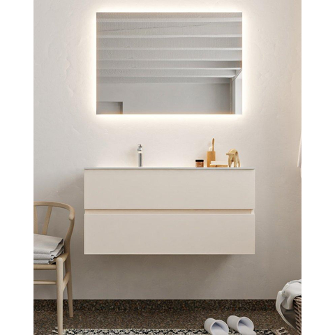 MONDIAZ VICA Badkamermeubelset - 100cm - 2 lades - wasbak Moon links - 1 kraangat - solid surface linen