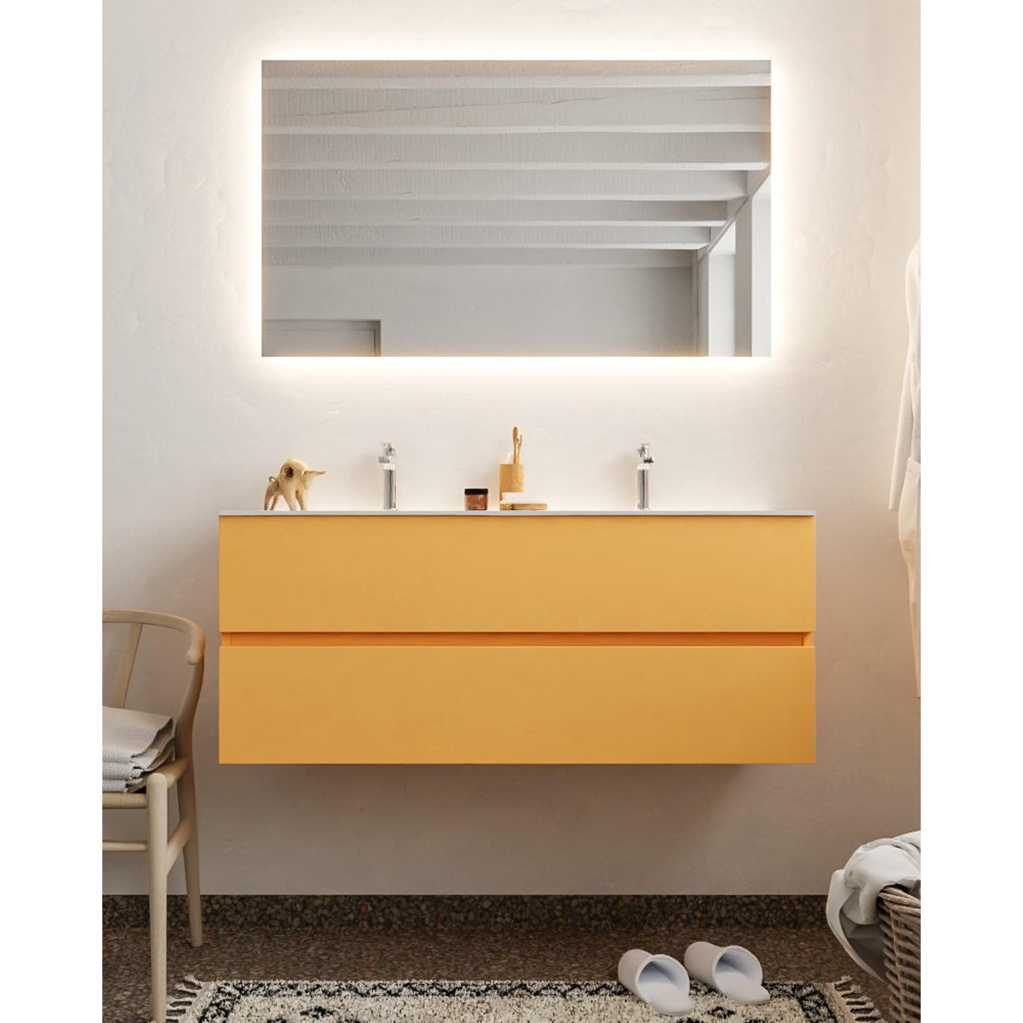 MONDIAZ VICA Badkamermeubelset - 120cm - 2 lades - wasbak Moon dubbel - 2 kraangaten - solid surface ocher