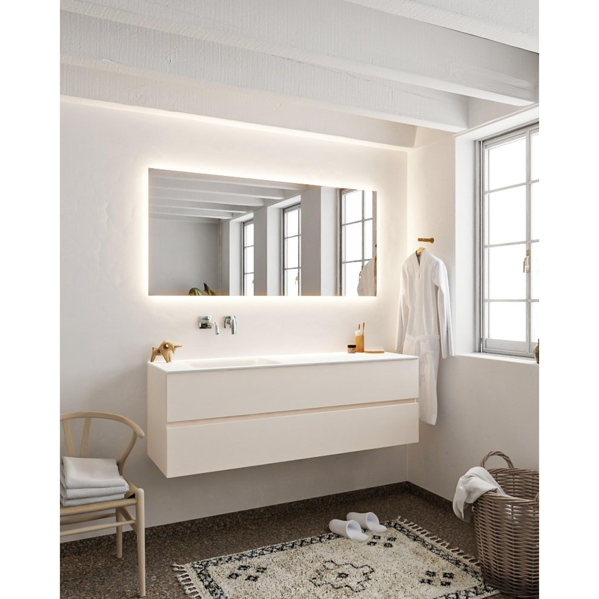MONDIAZ VICA Badkamermeubelset - 150cm - 2 lades - wasbak Cloud links - 0 kraangaten - solid surface linen