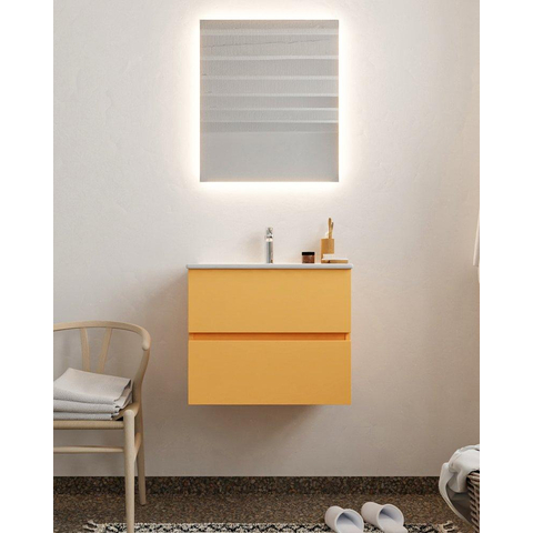 MONDIAZ VICA Badkamermeubelset - 60cm - 2 lades - wasbak Denia midden - 1 kraangat - solid surface ocher