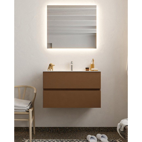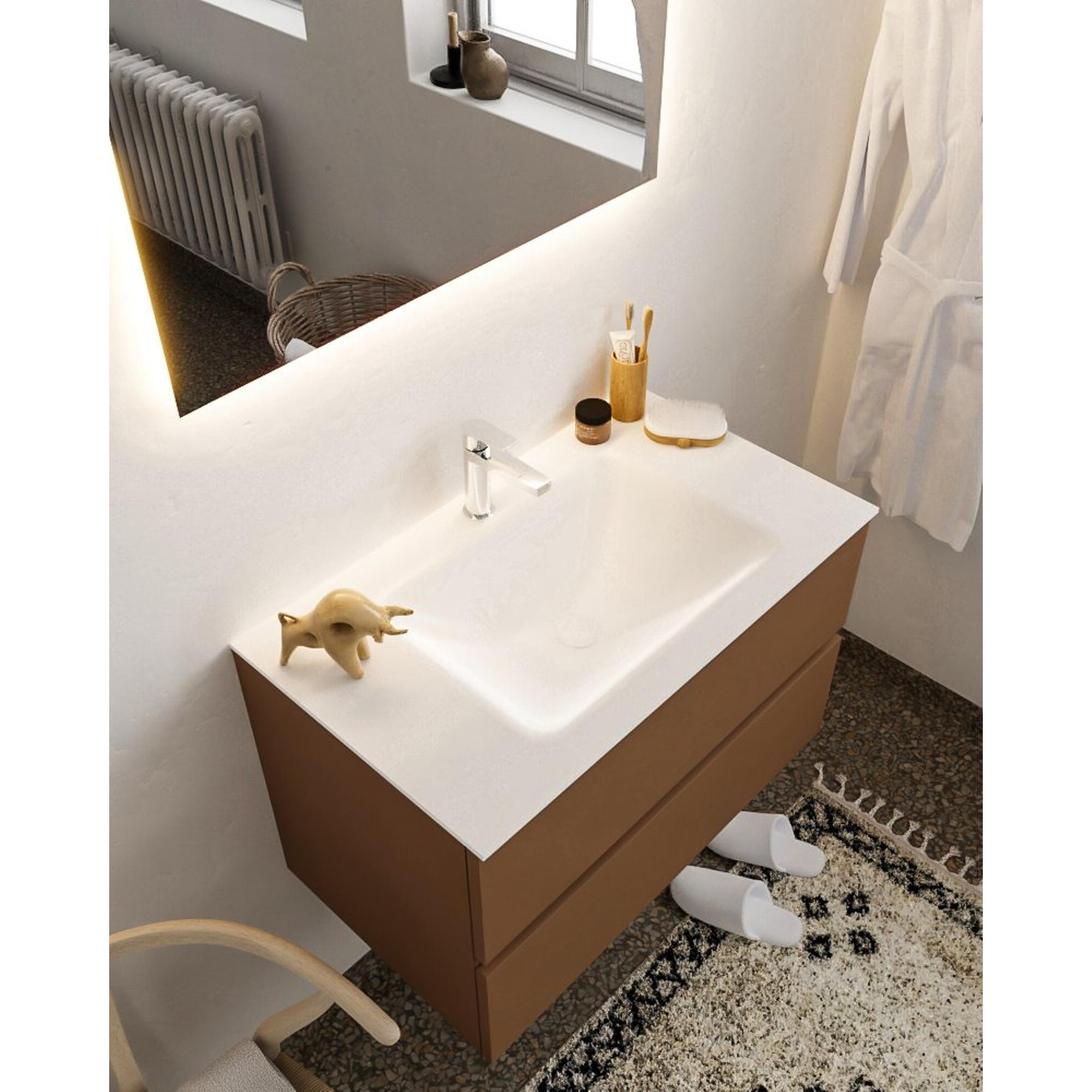 MONDIAZ VICA Badkamermeubelset - 80cm - 2 lades - wasbak Cloud midden - 1 kraangat - solid surface rust