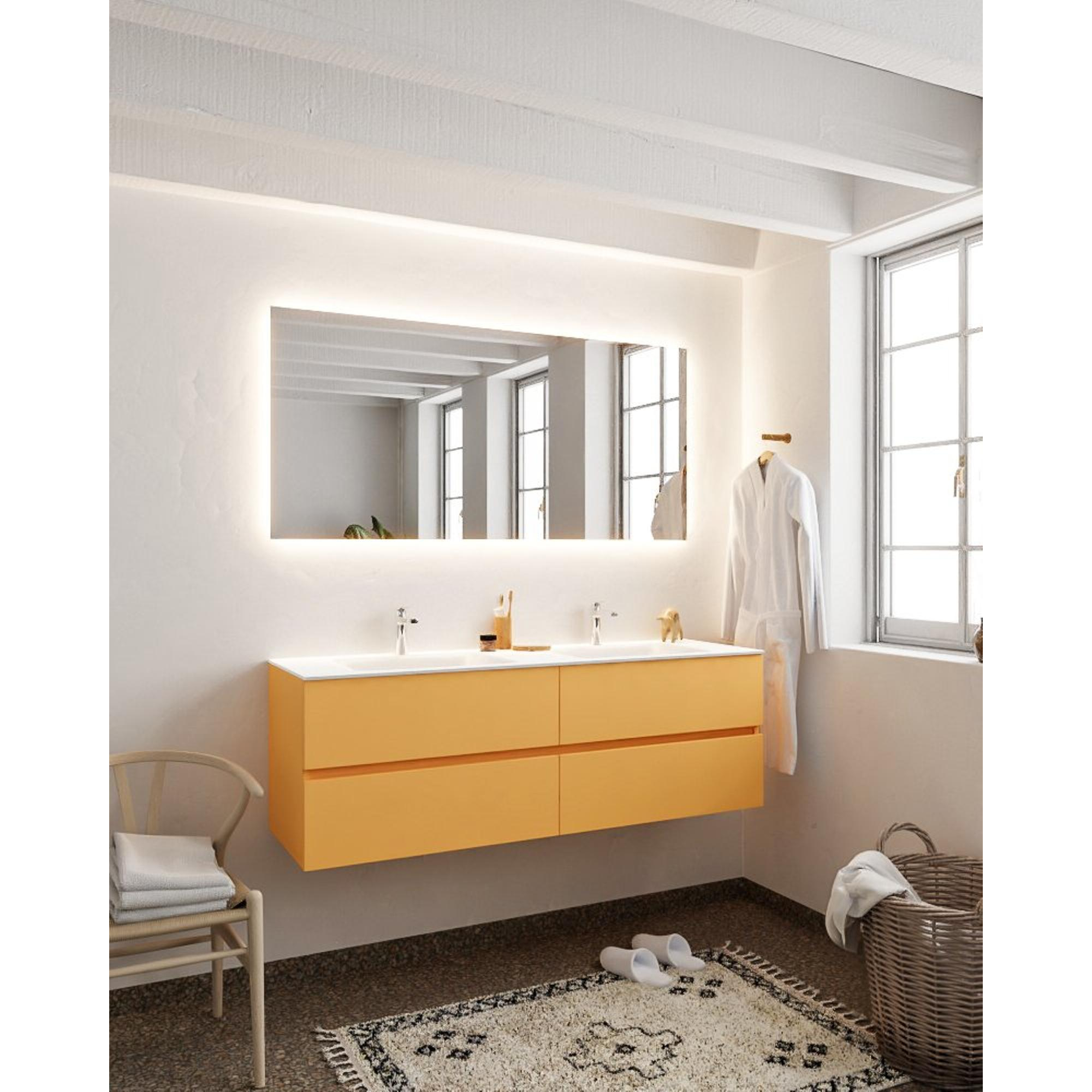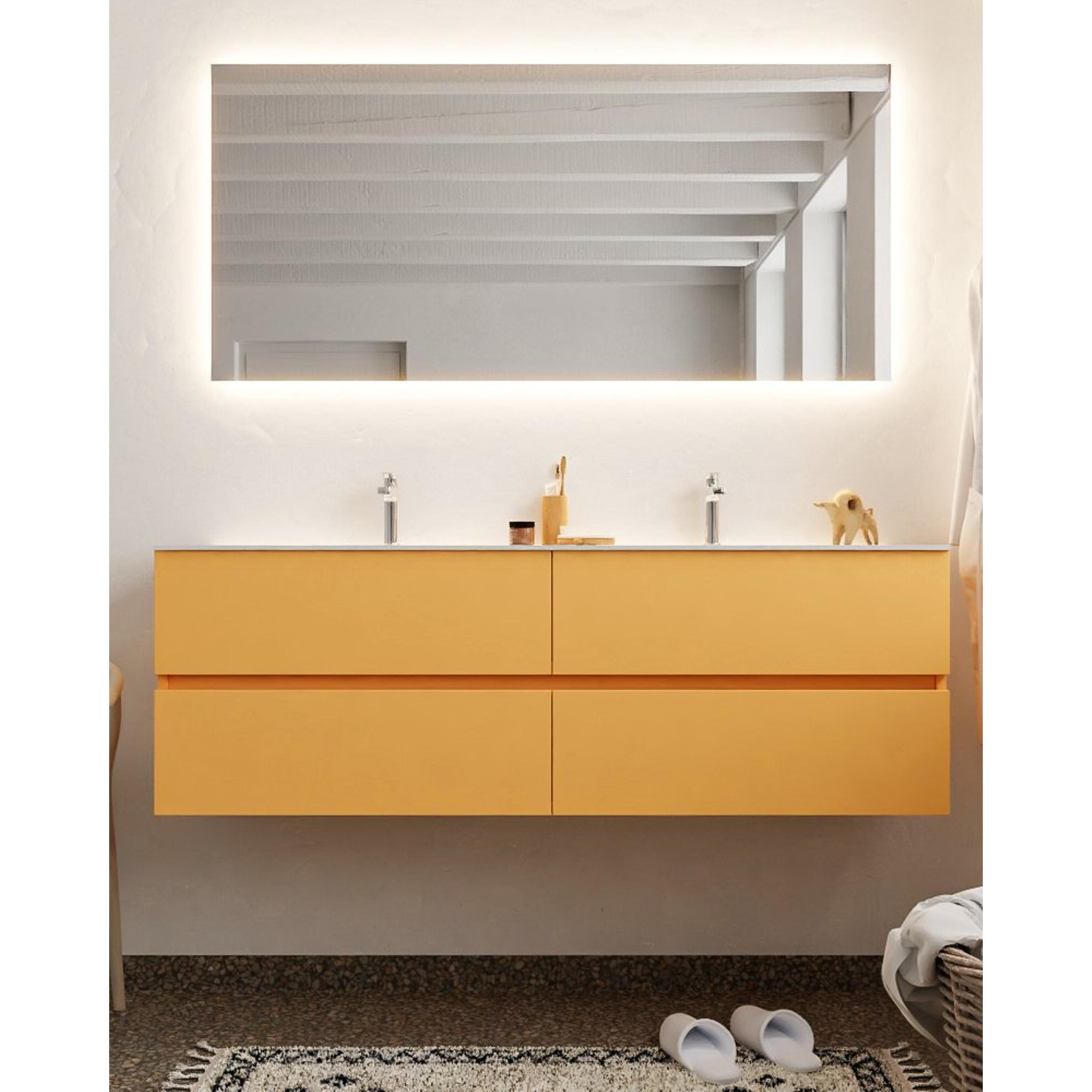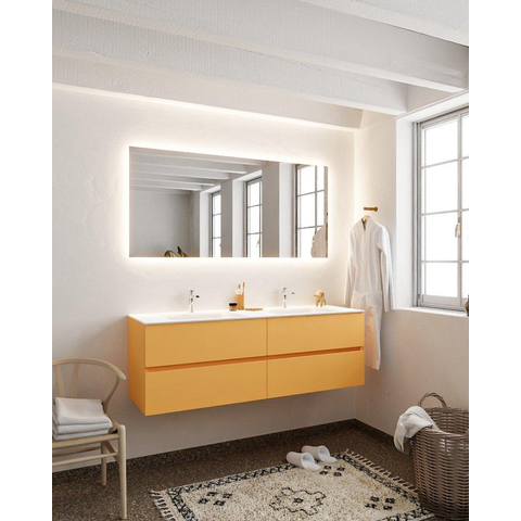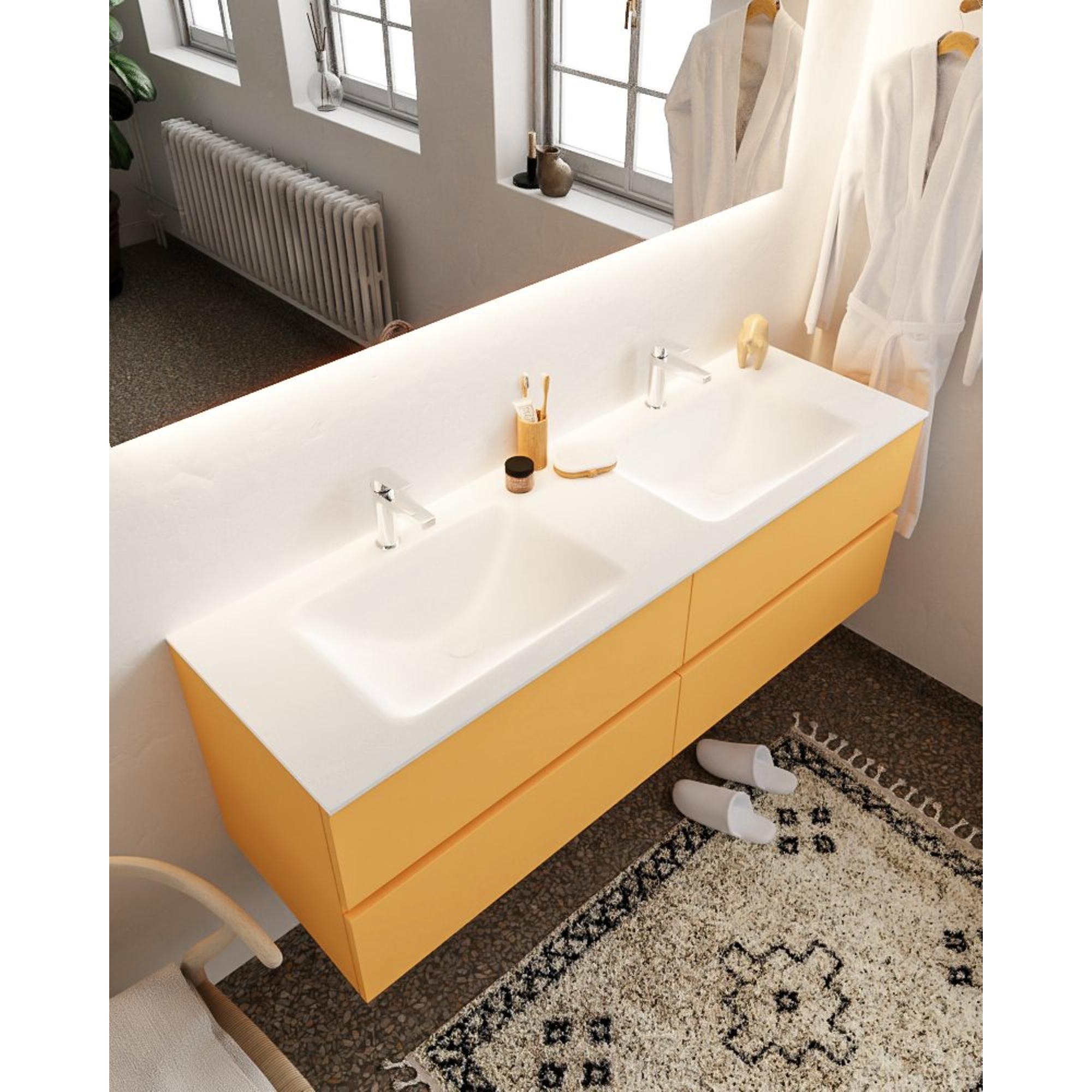 MONDIAZ VICA Badkamermeubelset - 150cm - 4 lades - wasbak Cloud dubbel - 2 kraangaten - solid surface ocher