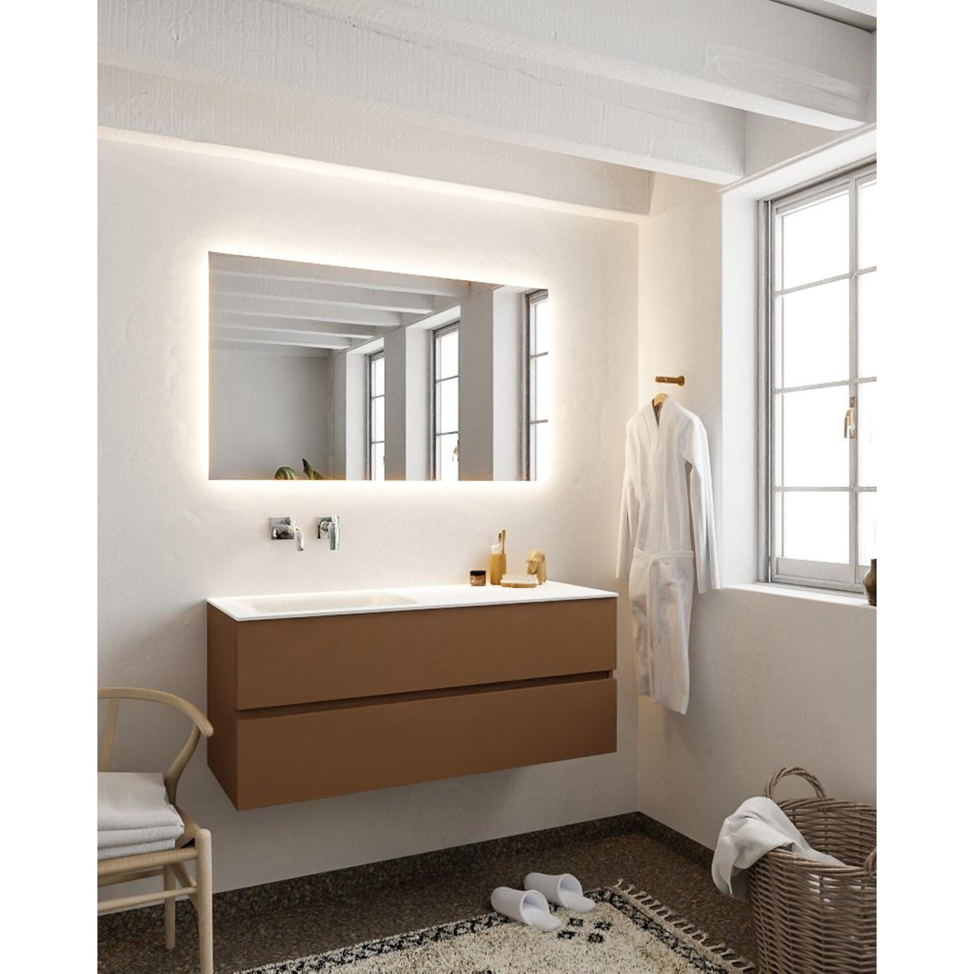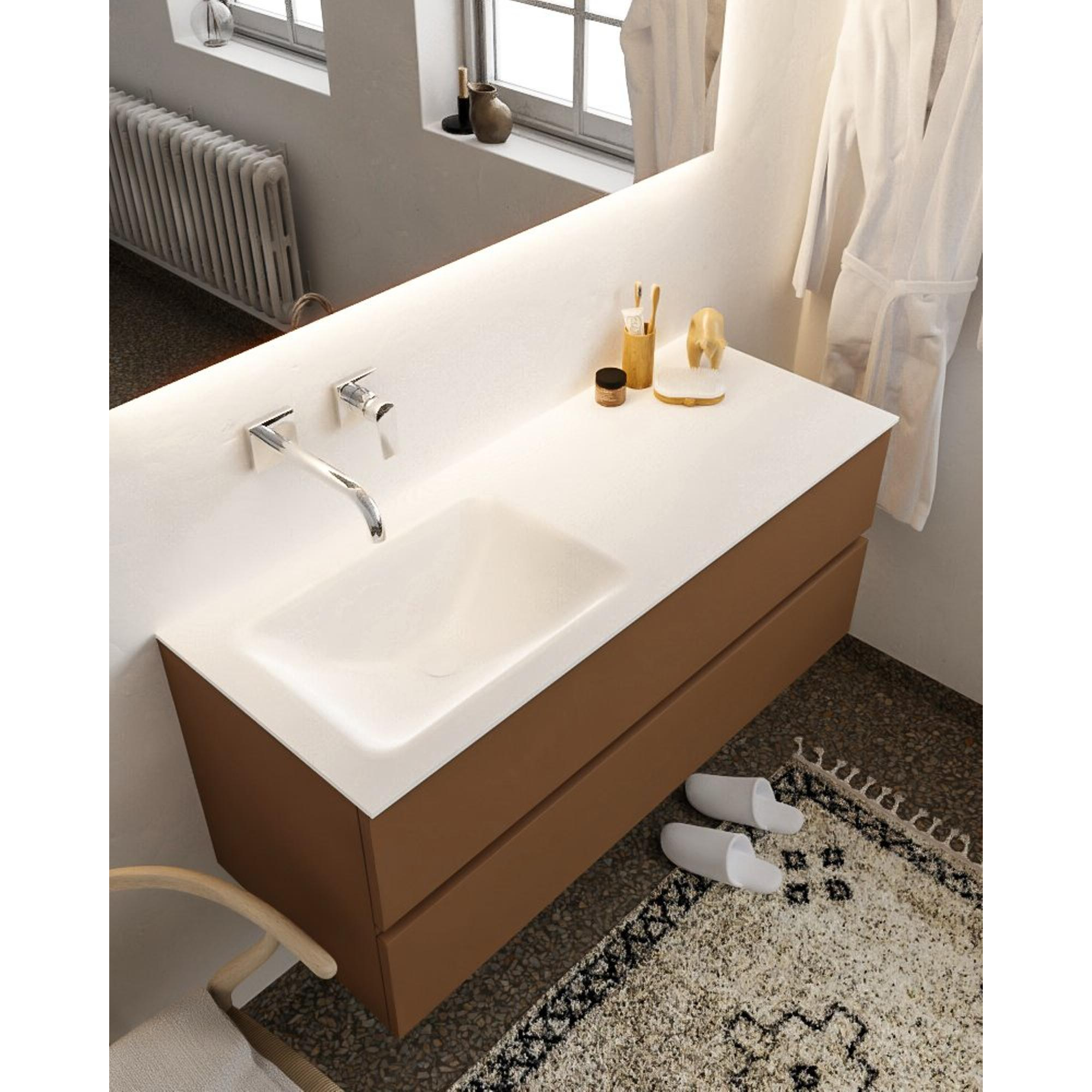 MONDIAZ VICA Badkamermeubelset - 120cm - 2 lades - wasbak Cloud links - 0 kraangaten - solid surface rust