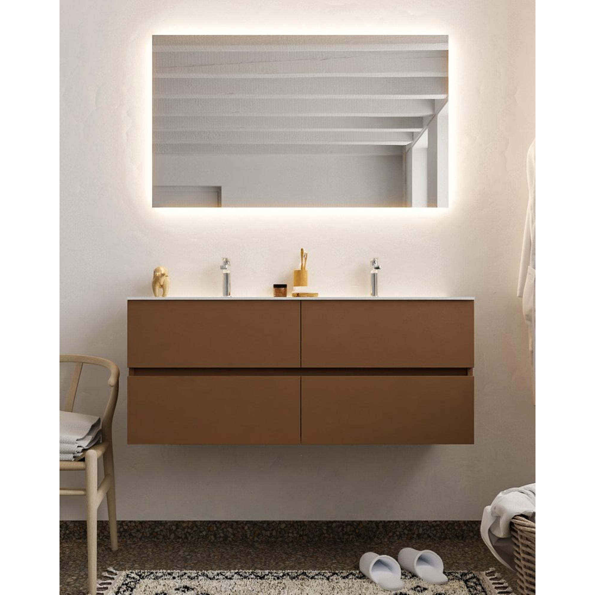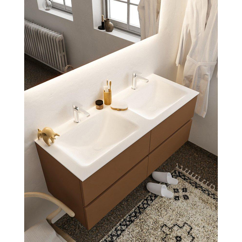 MONDIAZ VICA Badkamermeubelset - 120cm - 4 lades - wasbak Cloud dubbel - 2 kraangaten - solid surface rust