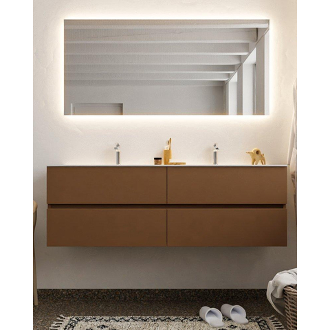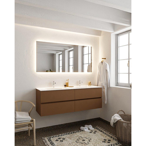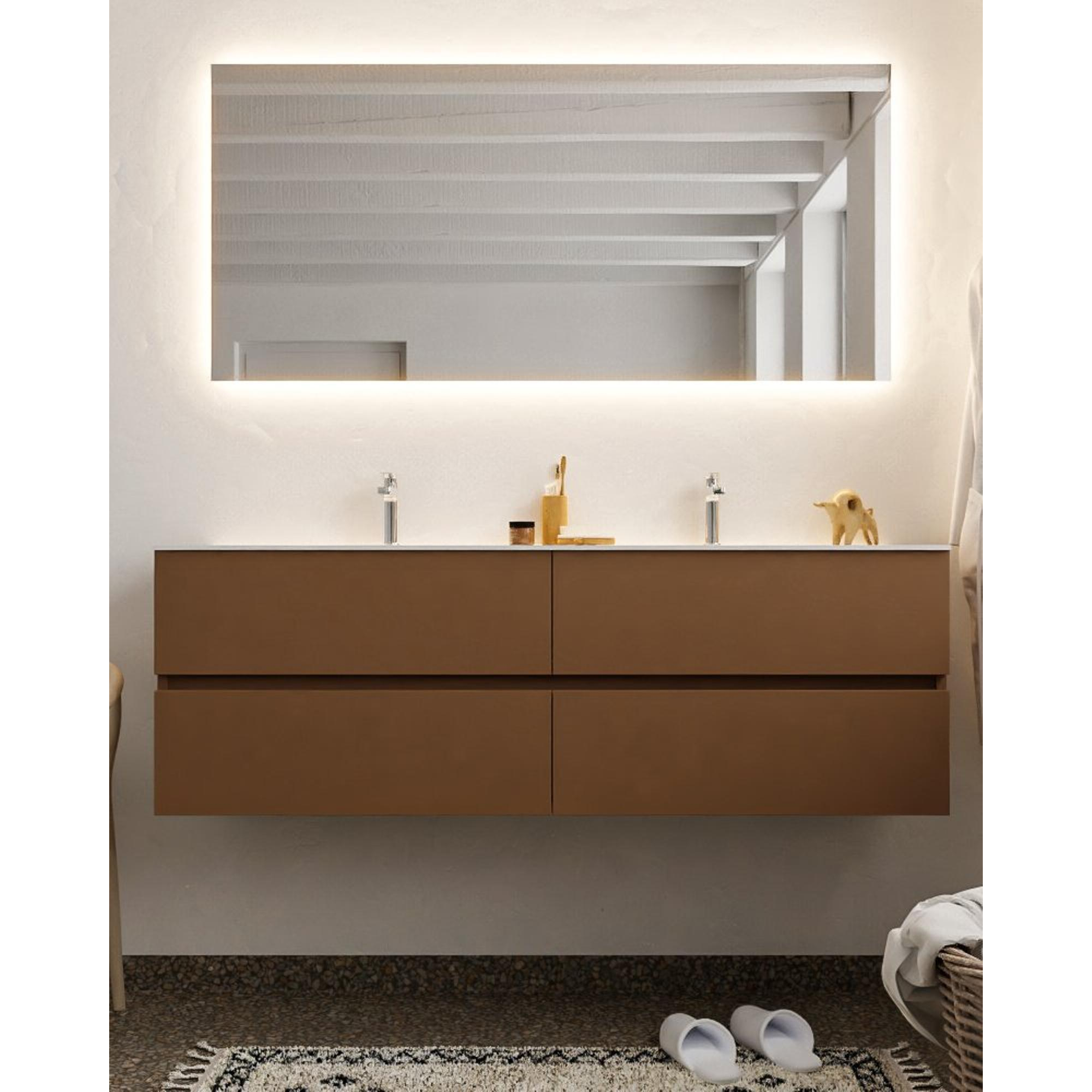 MONDIAZ VICA Badkamermeubelset - 150cm - 4 lades - wasbak Cloud dubbel - 2 kraangaten - solid surface rust