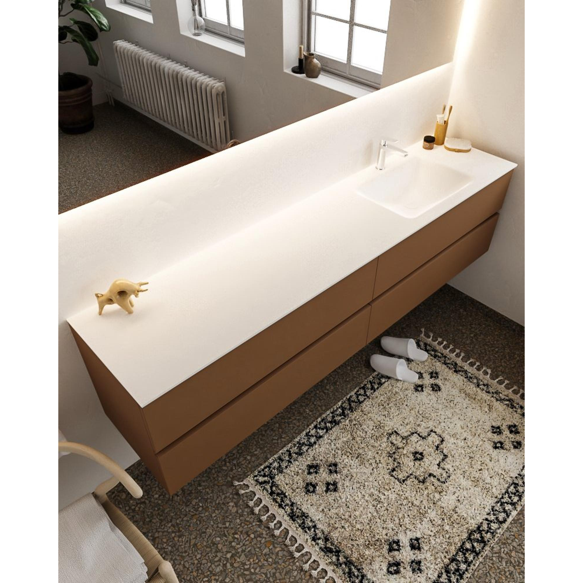 MONDIAZ VICA Badkamermeubelset - 200cm - 4 lades - wasbak Cloud rechts - 1 kraangat - solid surface rust