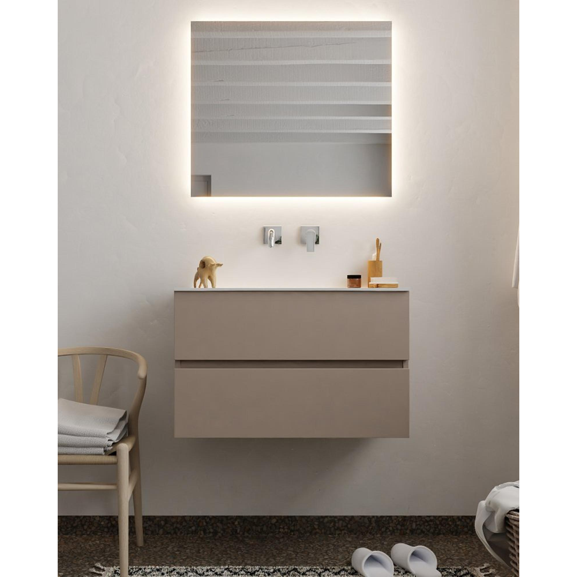Dit prachtige MONDIAZ VICA badkamermeubelset is een ware eyecatcher voor elke badkamer. Met zijn elegante design en hoogwaardige afwerking brengt dit meubelstuk stijl en functionaliteit samen. Het 80cm brede meubel beschikt over 2 ruime lades en een wasbak in het midden, waardoor het perfect is voor het opbergen van al je badkamerbenodigdheden. De strakke lijnen en de unieke solid surface smoke afwerking geven dit badkamermeubel een moderne uitstraling die je badkamer direct naar een hoger niveau tilt.