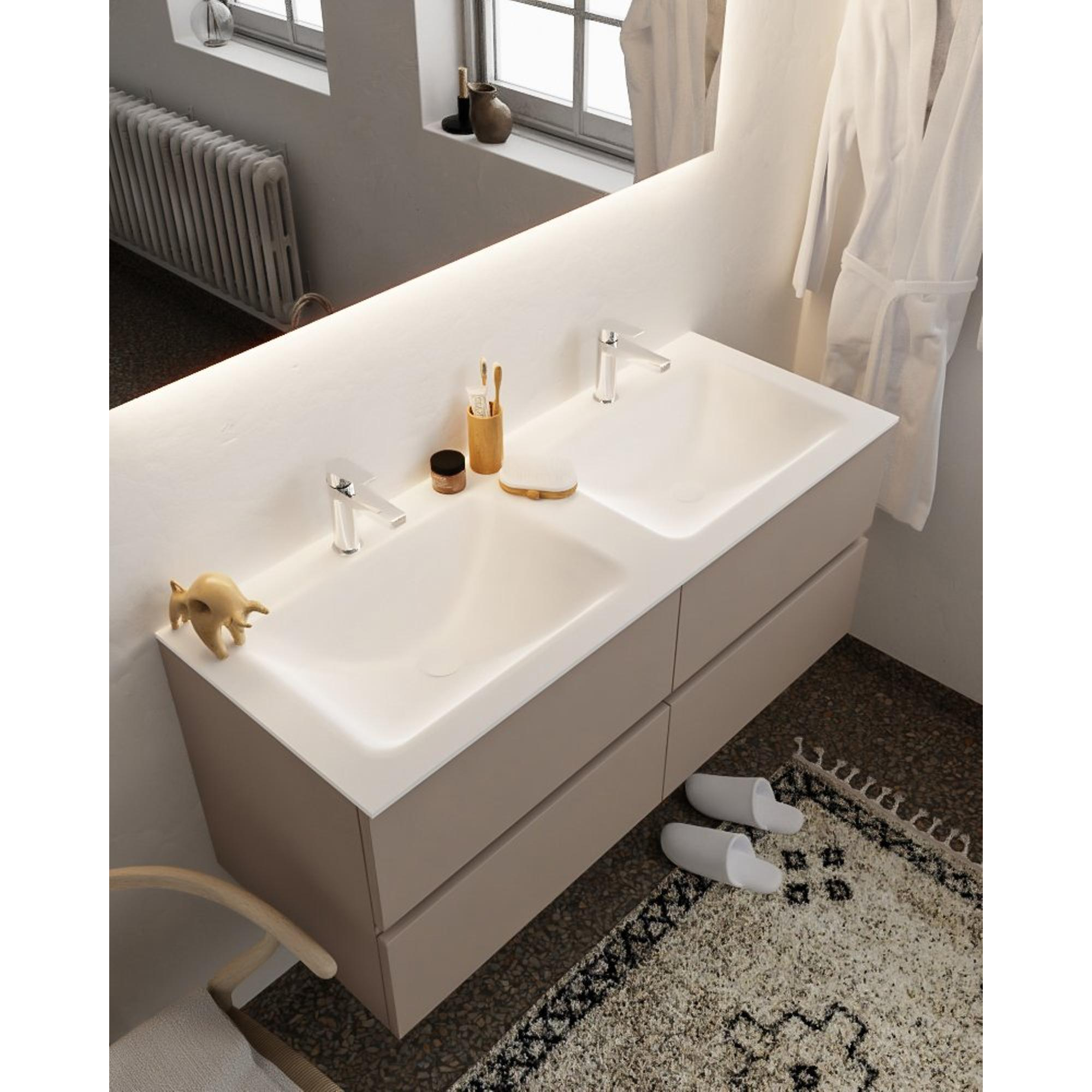 MONDIAZ VICA Badkamermeubelset - 120cm - 4 lades - wasbak Cloud dubbel - 2 kraangaten - solid surface smoke