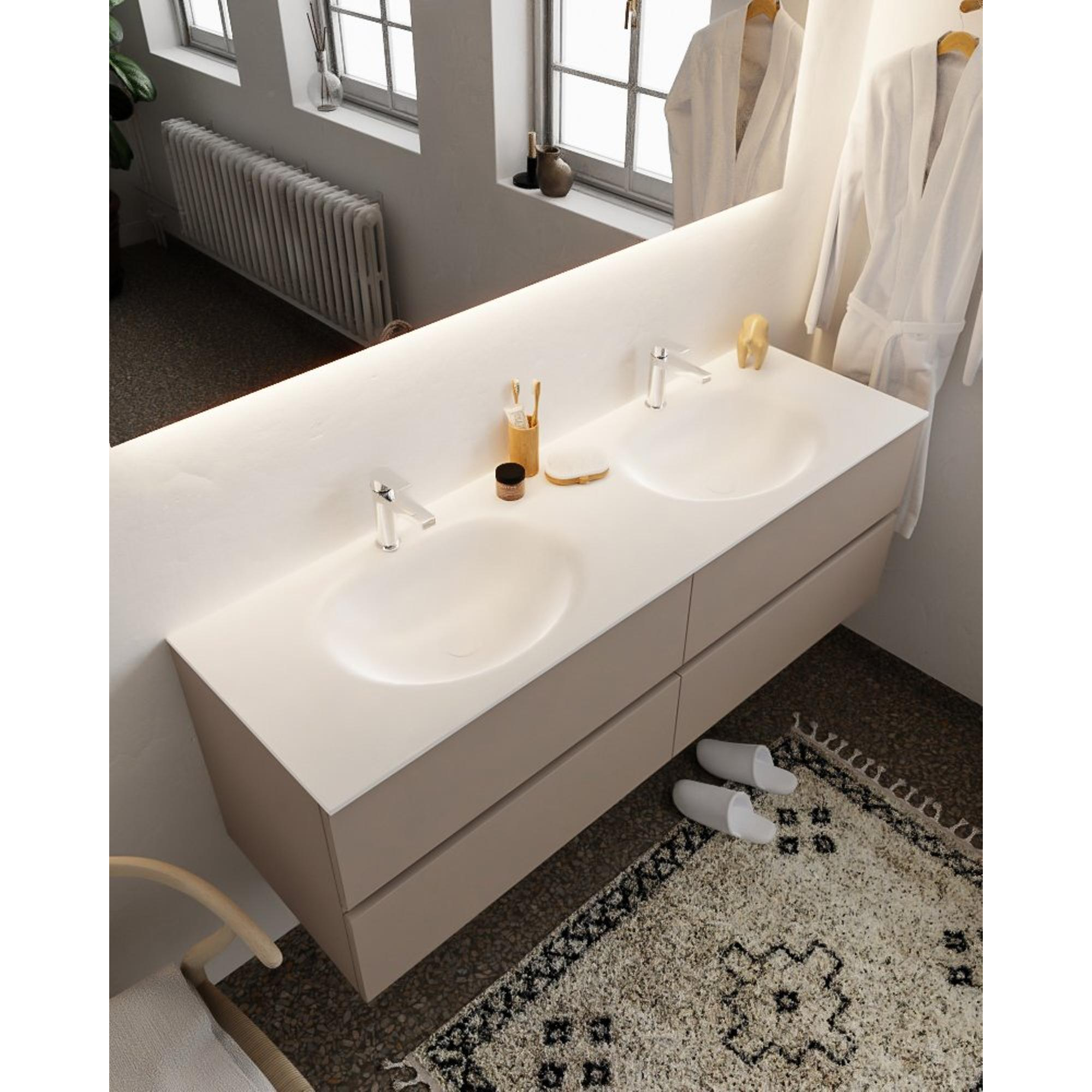 MONDIAZ VICA Badkamermeubelset - 150cm - 4 lades - wasbak Moon dubbel - 2 kraangaten - solid surface smoke
