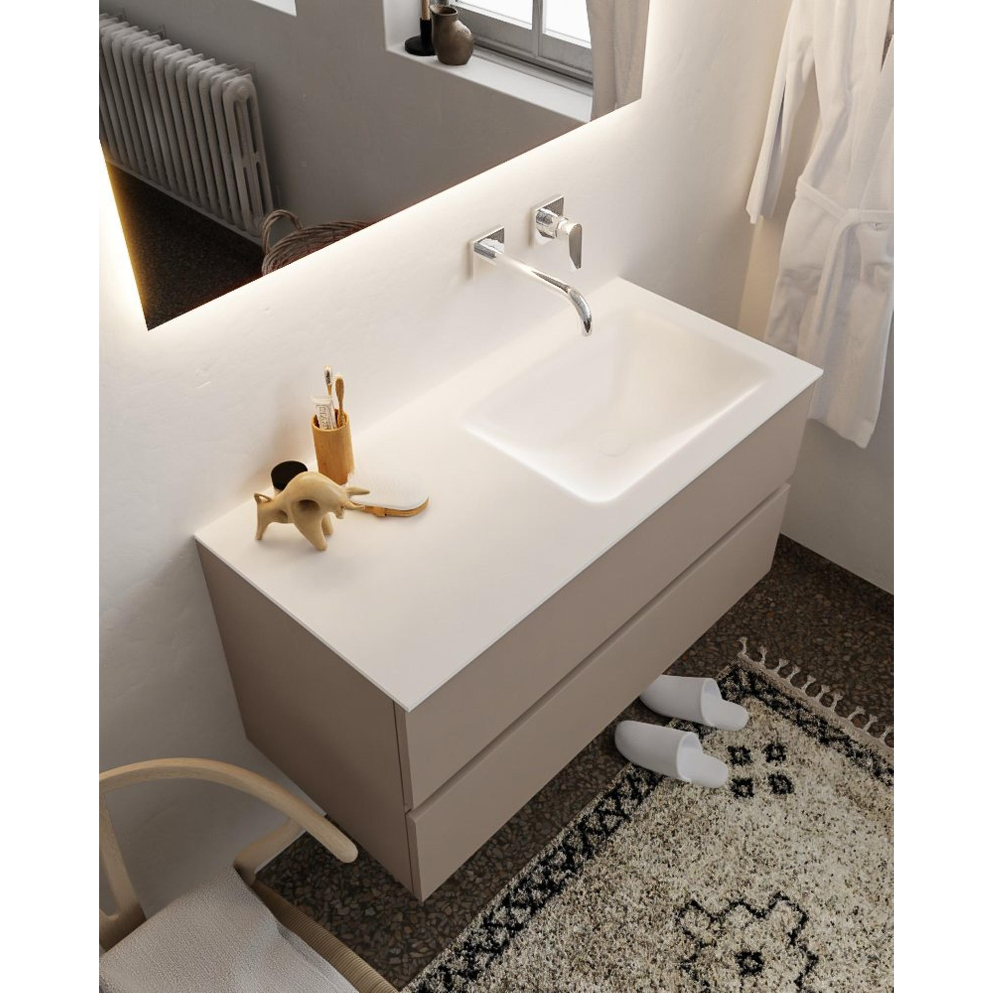 MONDIAZ VICA Badkamermeubelset - 100cm - 2 lades - wasbak Cloud rechts - 0 kraangaten - solid surface smoke