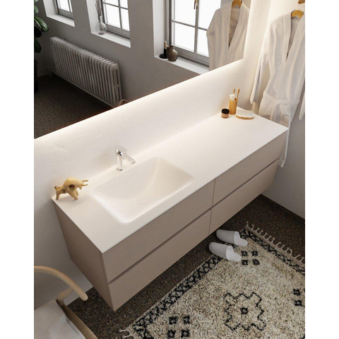 MONDIAZ VICA Badkamermeubelset - 150cm - 4 lades - wasbak Cloud links - 1 kraangat - solid surface smoke