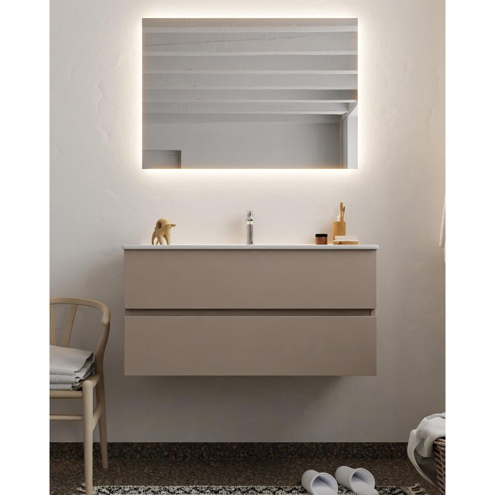 MONDIAZ VICA Badkamermeubelset - 100cm - 2 lades - wasbak Denia midden - 1 kraangat - solid surface smoke