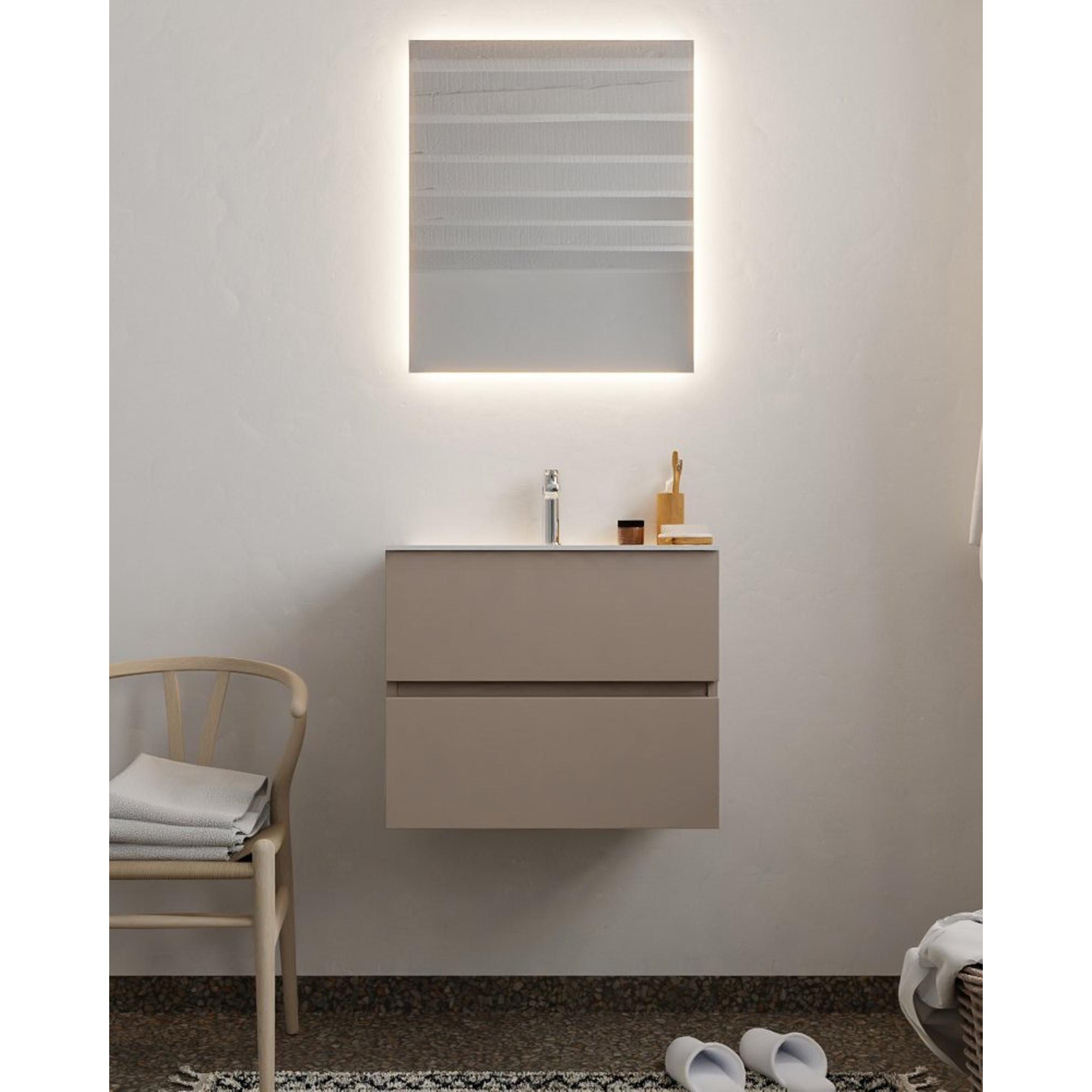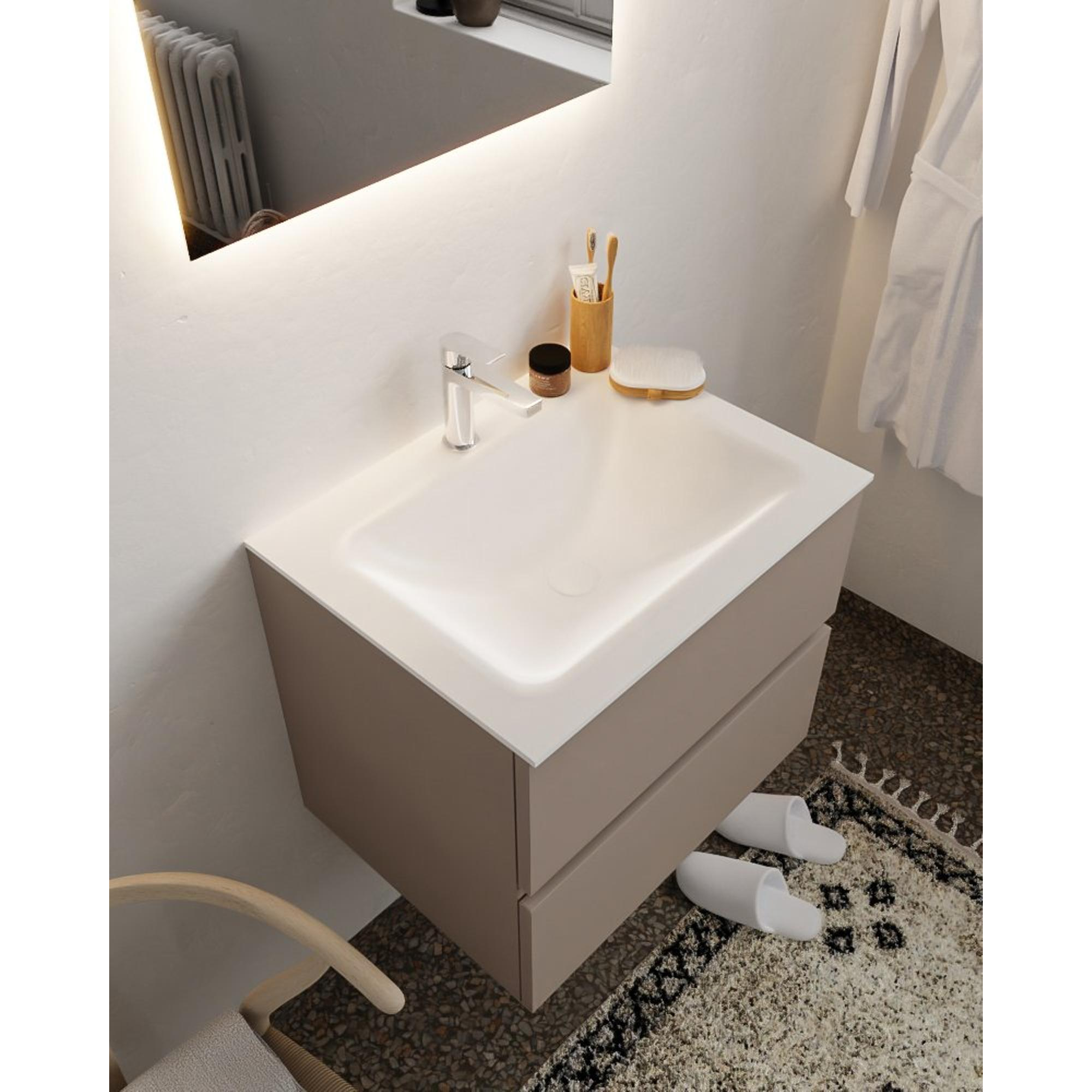 MONDIAZ VICA Badkamermeubelset - 60cm - 2 lades - wasbak Cloud midden - 1 kraangat - solid surface smoke