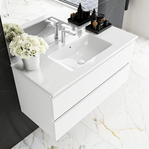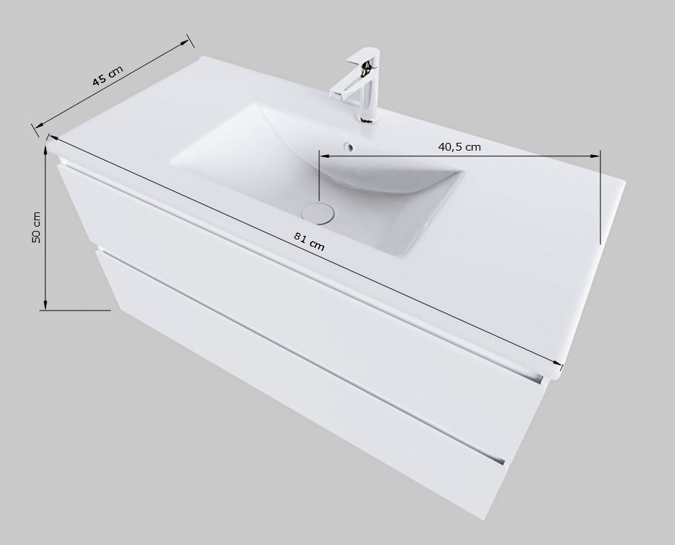 Naast zijn esthetische waarde is de MONDIAZ DENTA Badkamermeubelset ook zeer functioneel. De twee ruime lades bieden voldoende opbergruimte voor al je badkamerspullen, van handdoeken tot toiletartikelen. De handige indeling met de wasbak in het midden zorgt voor een efficiënt gebruik van de beschikbare ruimte. Het kraangat is strategisch geplaatst voor gemakkelijke toegang, waardoor dit meubelstuk zowel praktisch als elegant is.