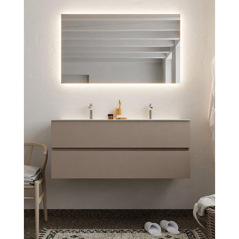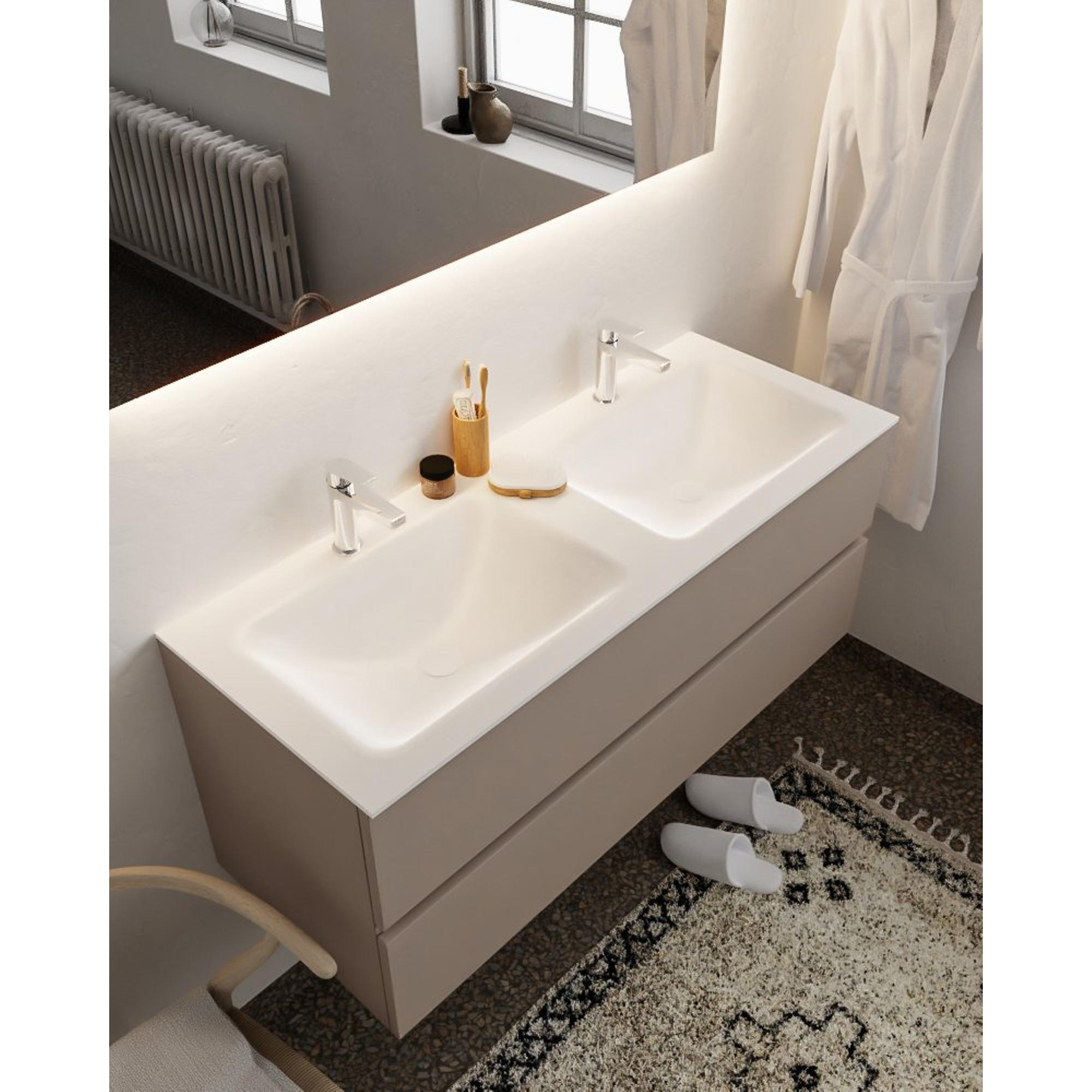 MONDIAZ VICA Badkamermeubelset - 120cm - 2 lades - wasbak Cloud dubbel - 2 kraangaten - solid surface smoke