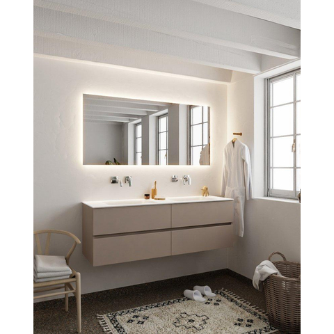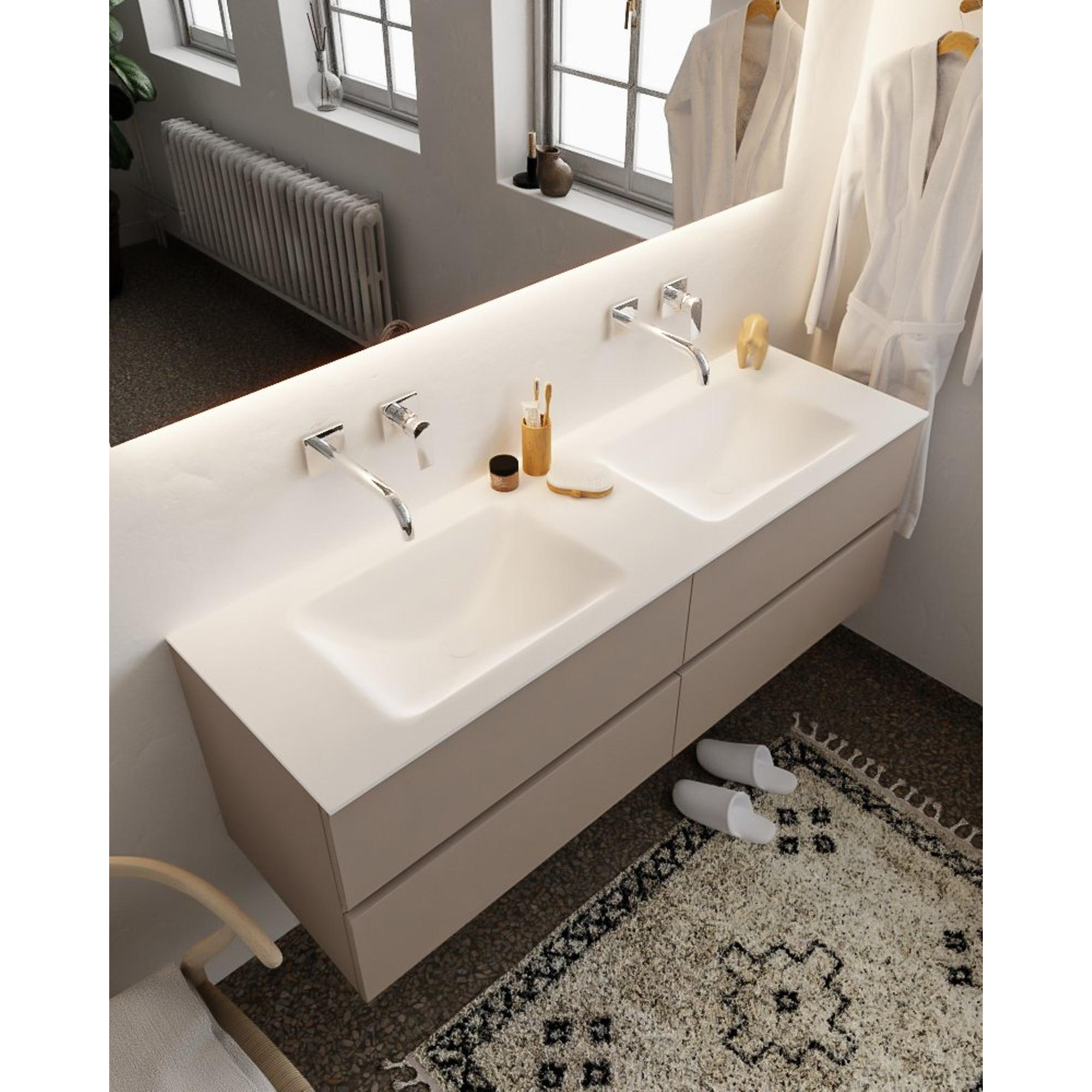 MONDIAZ VICA Badkamermeubelset - 150cm - 4 lades - wasbak Cloud dubbel - 0 kraangaten - solid surface smoke