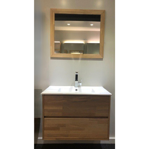 BRAUER Natural wood Nexxt badkamermeubelset 80x55x45.5cm 2 laden met keramiek wastafelblad met natural wood spiegel grey oak