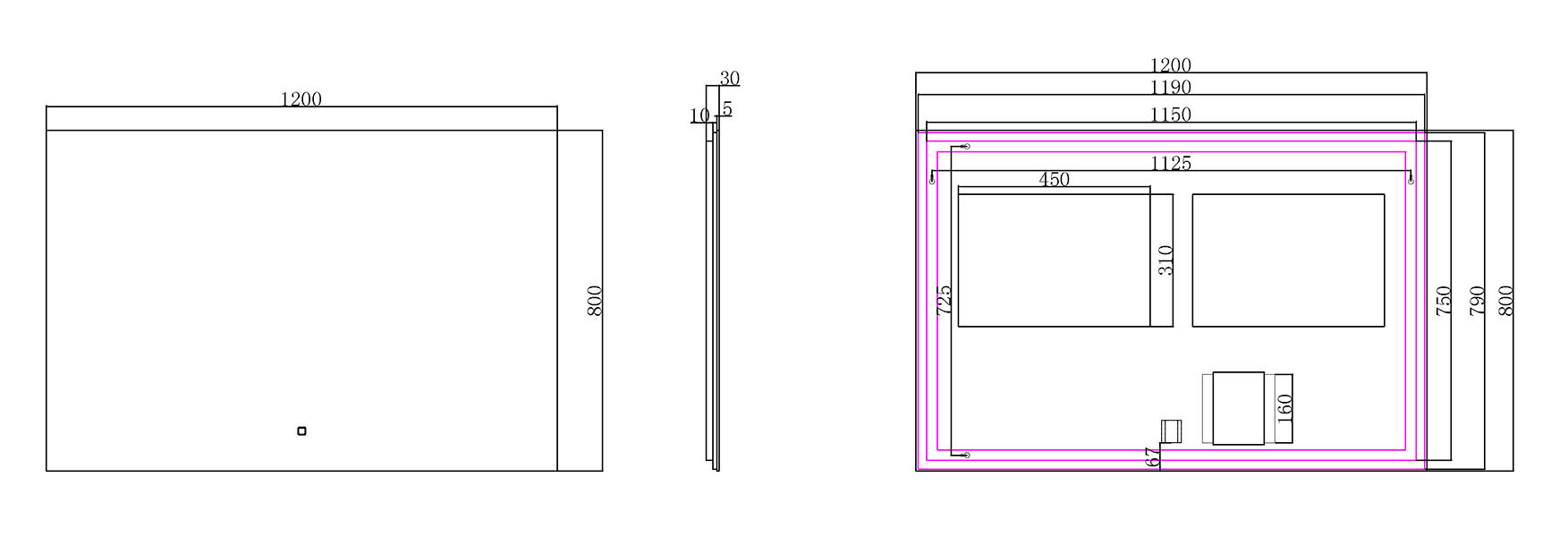 | Type spiegel | Wandspiegel met verlichting | |