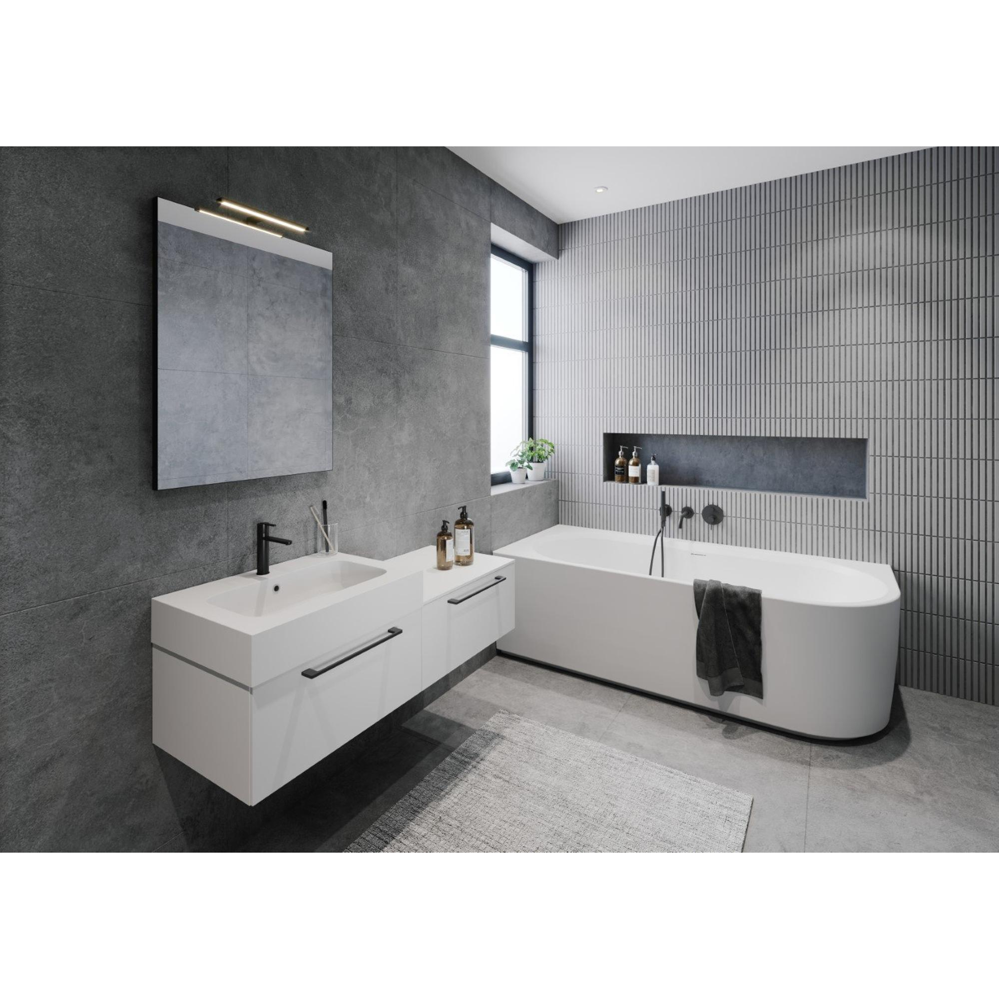 Desire Corner kan worden uitgevoerd in glanzend wit of mat wit acryl. Het ovaalvormige bad is half vrijstaand en verkrijgbaar in een linker en rechter versie. De strakke overloop opening kan worden gebruikt voor de geïntegreerde badvuller Riho Fall; een systeem om het bad te vullen via de overloop opening dat een losse kraan overbodig maakt. Desire wordt geleverd met frame, sifon en pop-up, waardoor een snelle montage mogelijk is.