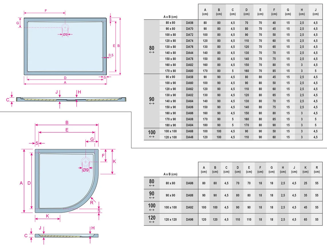 Douchebak ZÜRICH is een uitvoering zonder poten en panelen en is uitsluitend bestemd voor het monteren zonder poten. Dit model heeft een iets dunnere bodemplaat en moet daarom vlak op het vloeroppervlak gemonteerd worden.