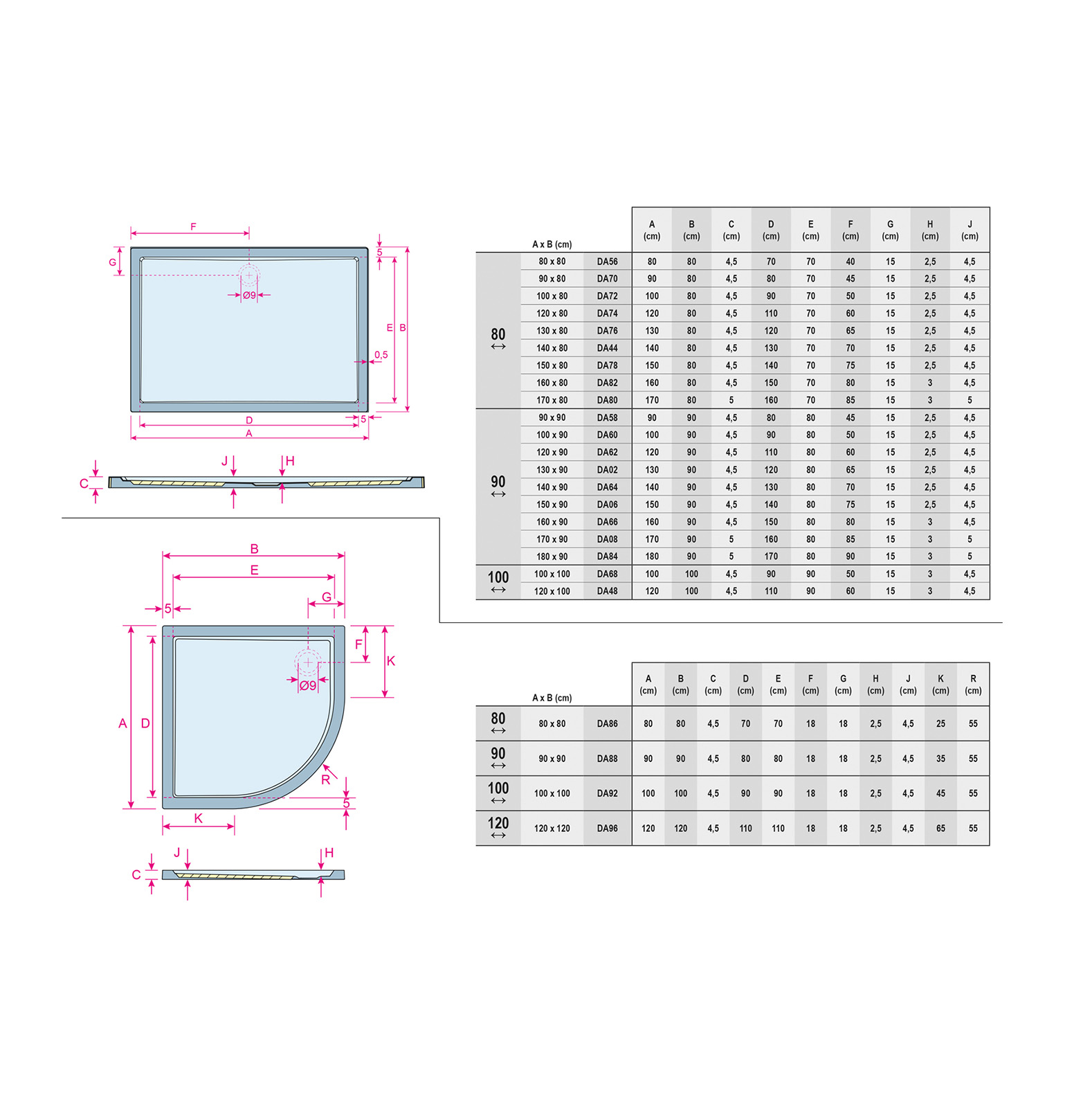 Douchebak ZÜRICH is een uitvoering zonder poten en panelen en is uitsluitend bestemd voor het monteren zonder poten. Dit model heeft een iets dunnere bodemplaat en moet daarom vlak op het vloeroppervlak gemonteerd worden.