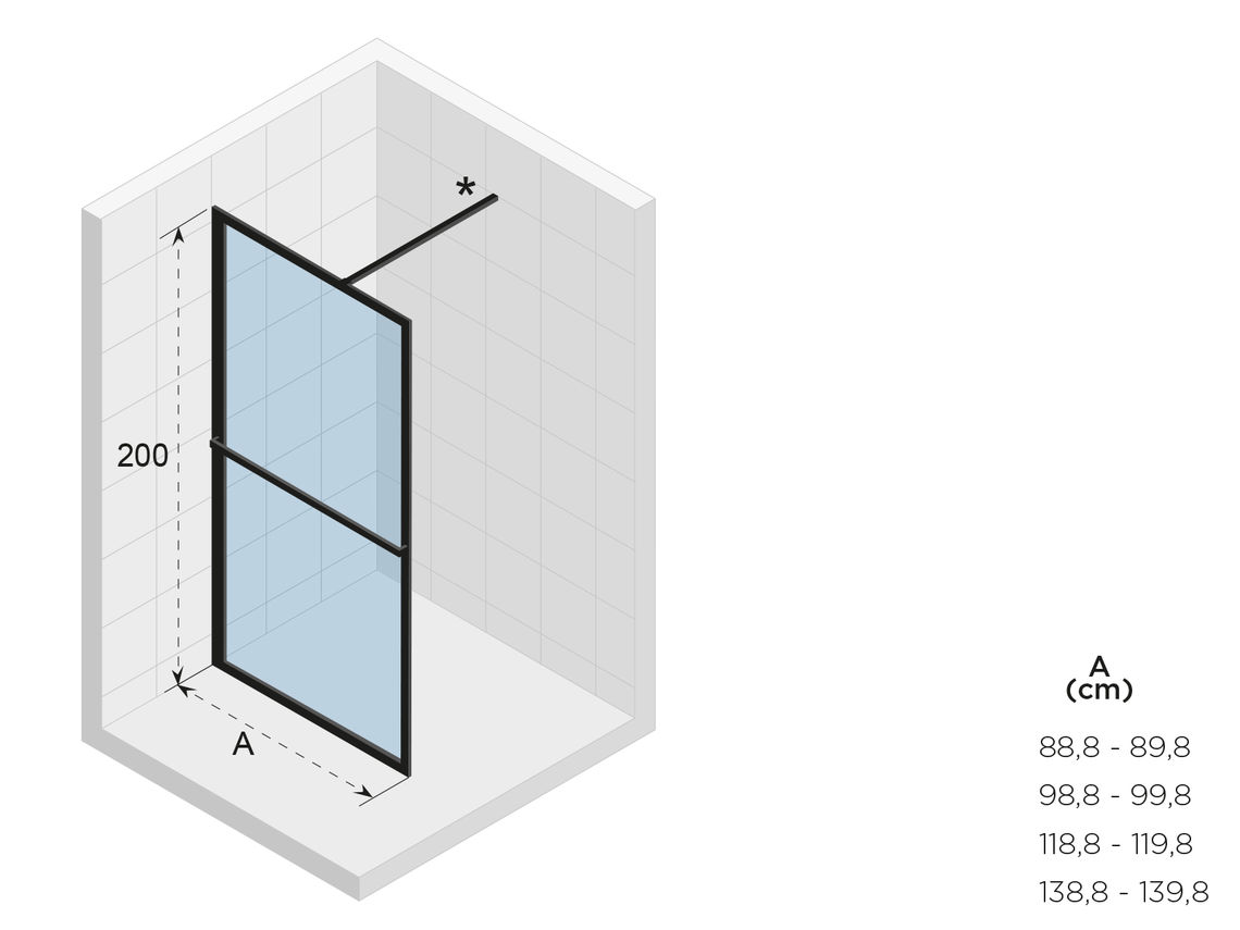De douchewand heeft een afmeting van 120x200cm met een verstelbaarheid van 118.8 tot 119.8cm. Standaard wordt deze geleverd met twee stabilisatiestangen in dezelfde kleur als het frame. Lucid heeft een omkadering en een beugel die dienst kan doen als handdoekrek. U kunt er uiteraard ook voor kiezen de beugel niet te bevestigen als dat mooier of praktischer uitkomt in uw badkamer.